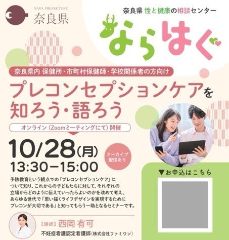 2024年10月には、奈良県内の保健所・市町村保健師・学校関係者の方向けに「プレコンセプションケアを知ろう・語ろう」オンラインセミナーを開催いたしました。