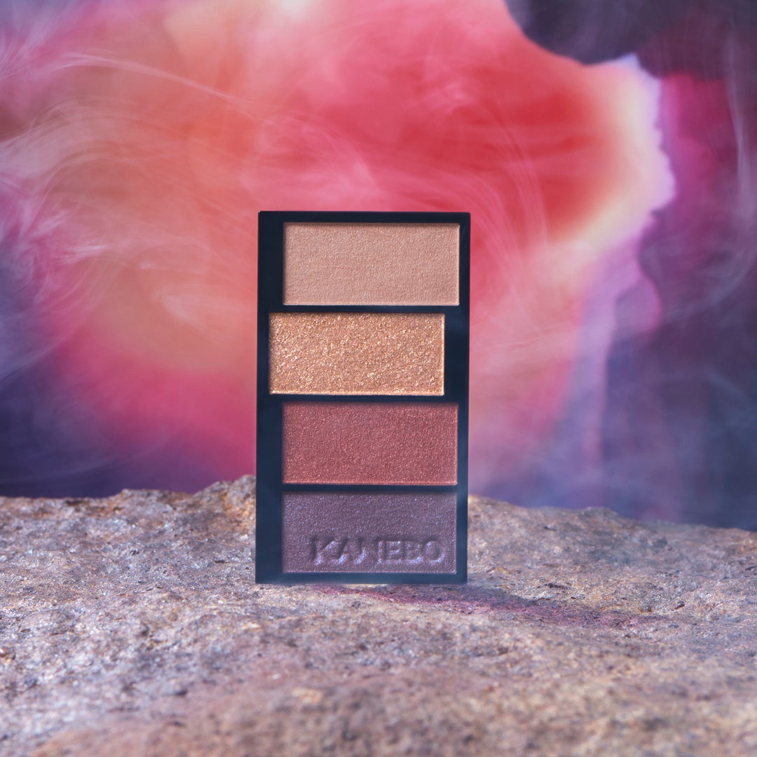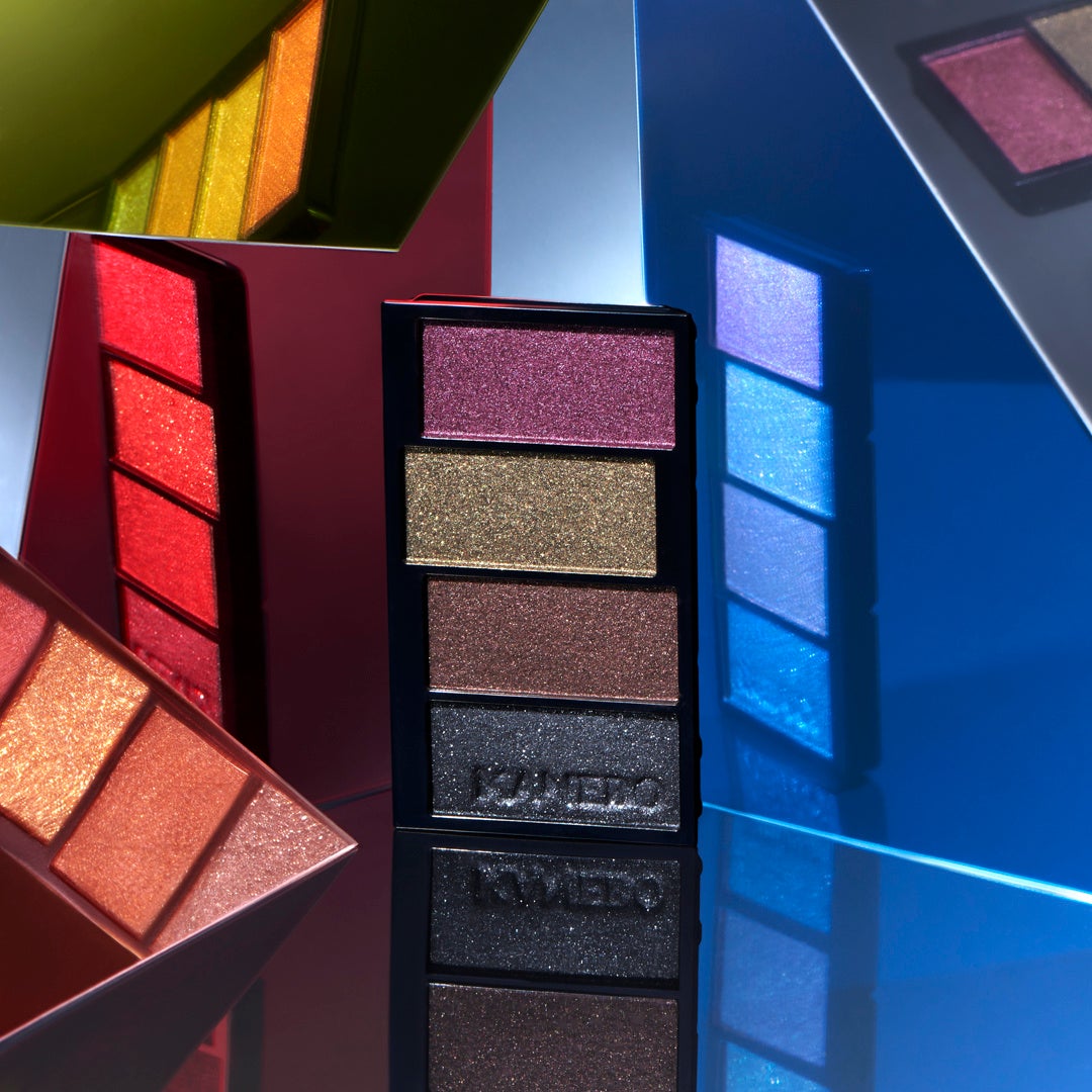 4色すべて影色の限定パレット。レッド、ゴールド、ブルーの色ニュアンスを帯びた4つの影。内なる欲望を語るような力強い眼差しに。