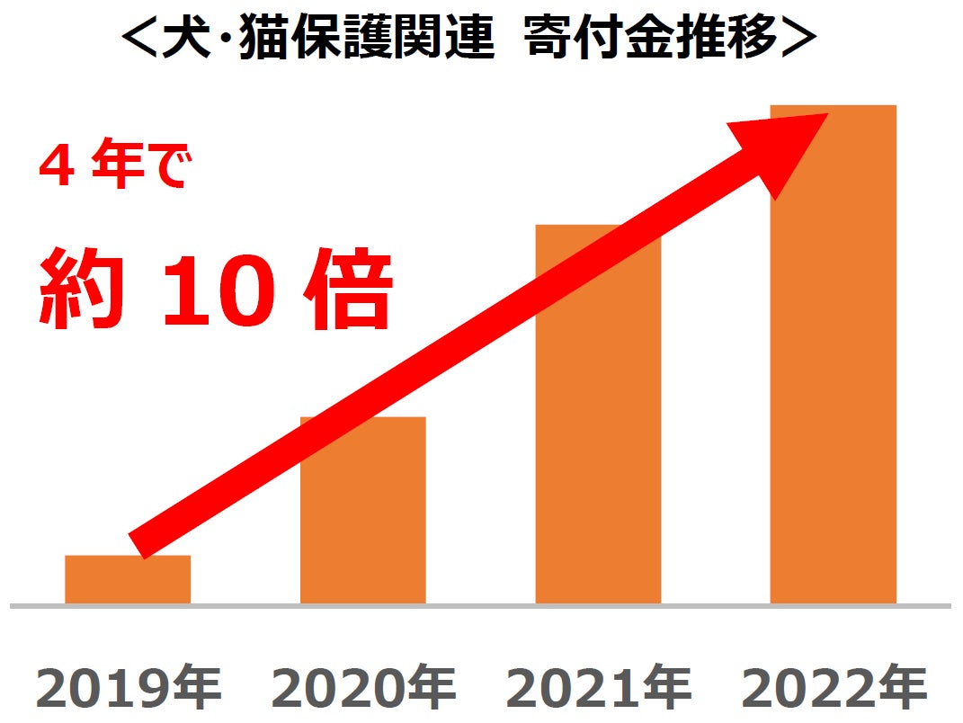 さとふるが2018年に立ち上げた「さとふるクラウドファンディング」ではこれまで約250事業の寄付を募集してきました。その中で、地域猫の殺処分対策や、飼育放棄対策などの動物保護・育成関連の事業への寄付は2019年からの4年間で約10倍(※1)に増加しています。中でも犬・猫保護の関連事業は他の事業と比べてクラウドファンディングの目標達成率が約2.6倍(※2)と寄付者の関心を集めています。