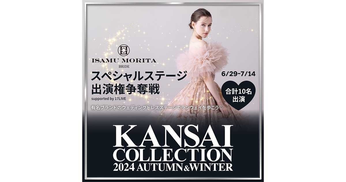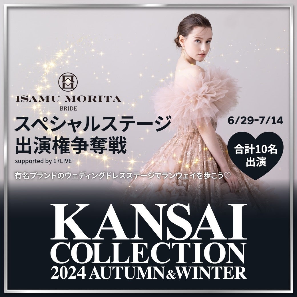 今回、モデルやファッション分野の道で活躍したいというイチナナライバーの夢を実現するキッカケづくりにしてほしいという思いから、日本のファッションエンターテイメント業界を牽引している「KANSAI COLLECTION 2024 A/W」において、花嫁の「切ないほどの美しさ」を表現する人気ドレスブランド「ISAMU MORITA BRIDE」と「17LIVE」のスペシャルステージへの出演権をかけたイベントを実施することが決定いたしました。「17LIVE」における「KANSAI COLLECTION」でのスペシャルステージ出演を懸けたオーディションイベントは、今回で5回目の実施となります。