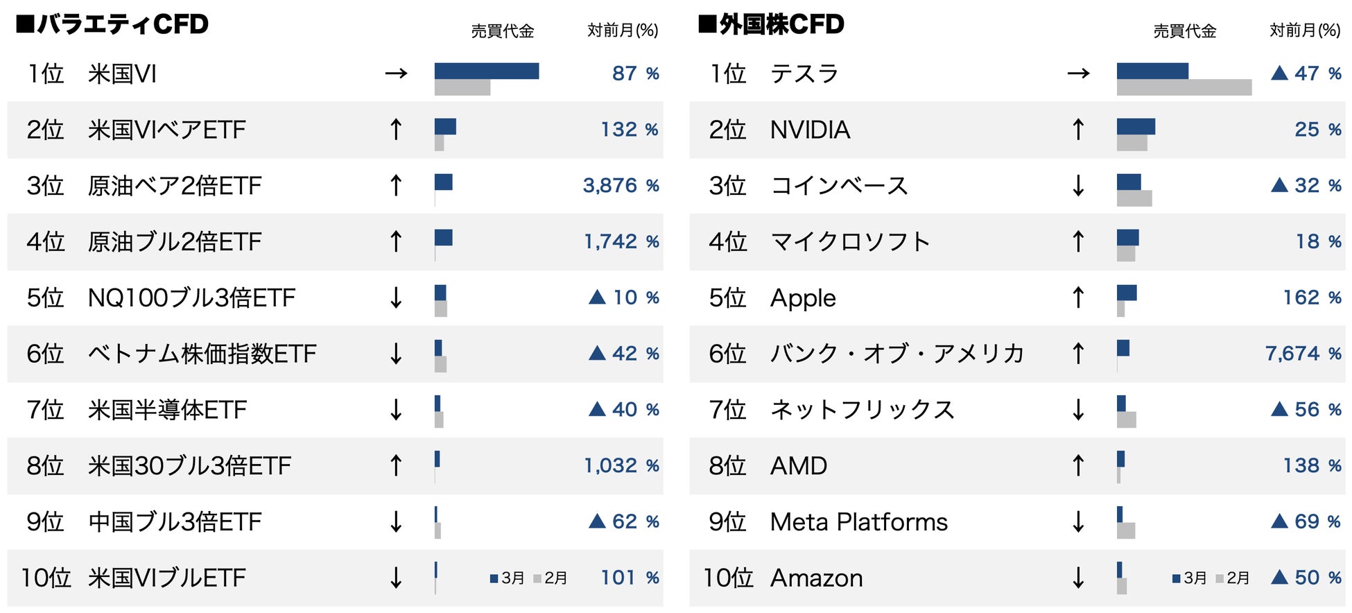 ~総合首位は米国NQ100!バラエティCFDでは米国VI、外国株CFDではテスラが首位に~