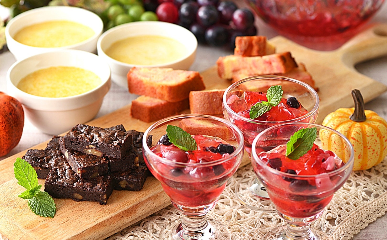 更にアイテム追加で魅力が増した「ブッフェ ザ フォレスト」の『スイーツブッフェ』では、フレッシュフルーツ以外にも、ふるっふる食感!紅色のレッドルビーと数種のベリーをちりばめた『ぶどうとミックスベリーのジュレ』や、お好みのトッピングで楽しめる、まろやかでこく深い『かぼちゃのココナッツ汁粉』など、食後のリラックスタイムに最適なほっこりメニューが勢ぞろい!