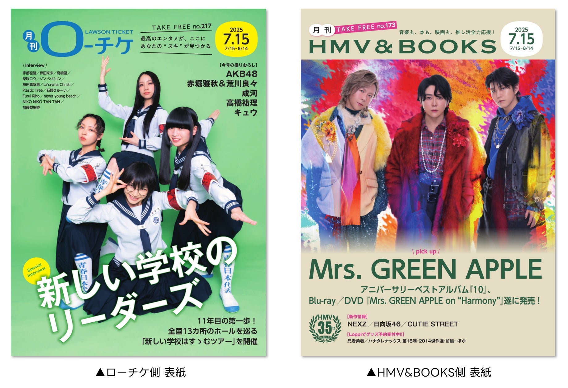 【本日発行】フリーペーパー『月刊ローチケ/月刊HMV&BOOKS』7月15日号の表紙・巻頭特集は「新しい学校のリーダーズ」&「Mrs. GREEN APPLE」