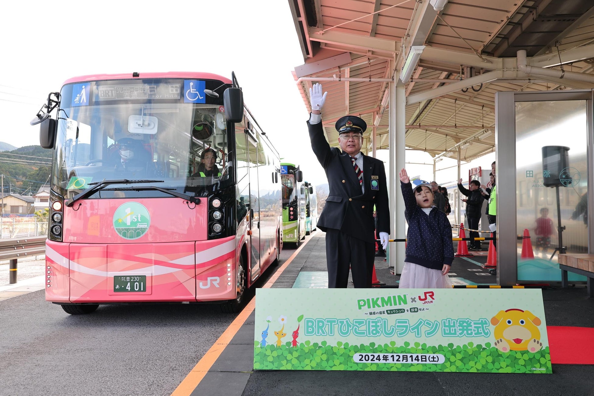 「PIKMIN×JR九州~魅惑の惑星キュウシュウを探索せよ~」BRTラッピングイベント、出発式を実施しました!