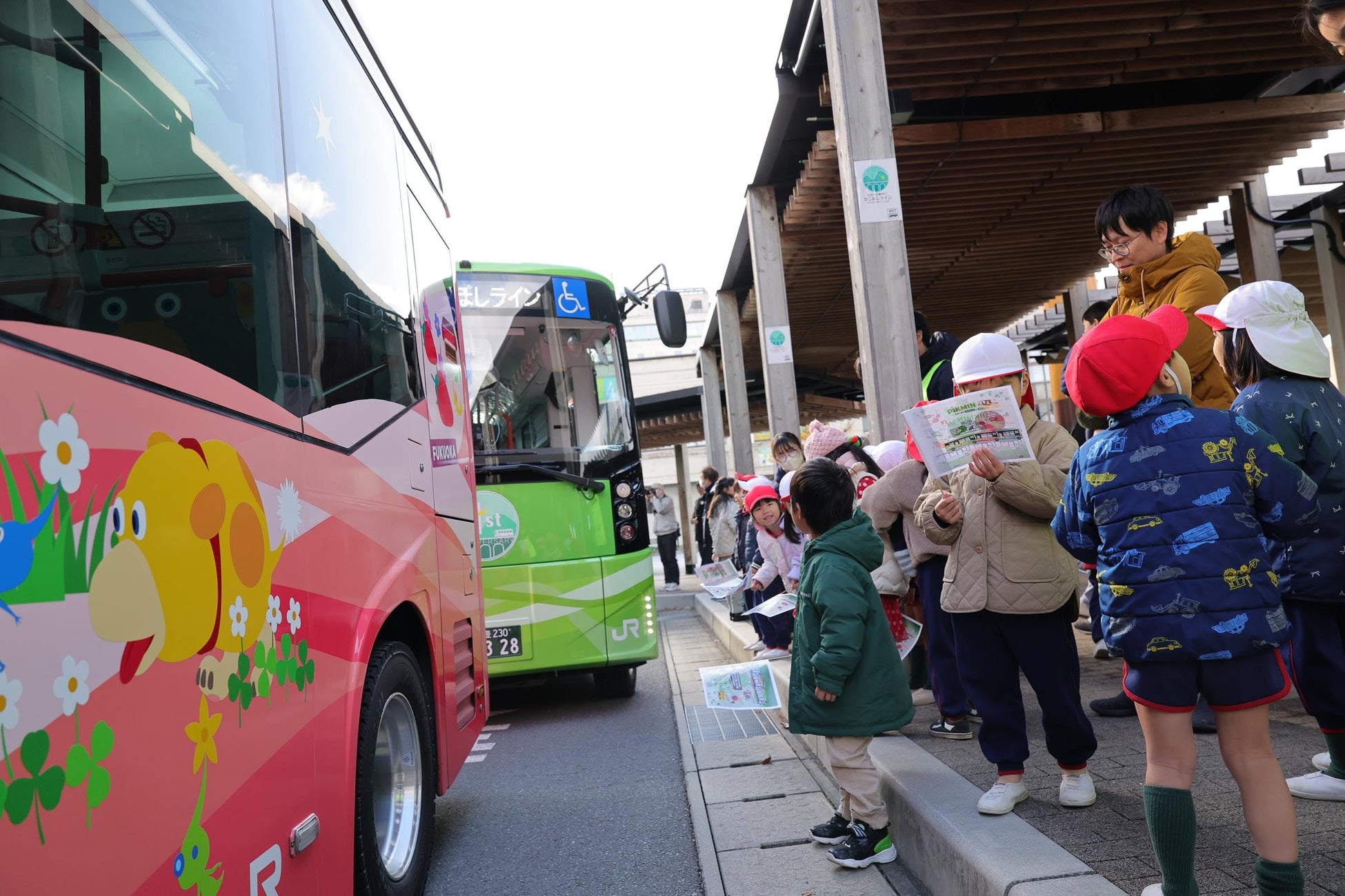 また、終点の日田駅では、三隈幼稚園の園児にお出迎えを実施いただきました。
