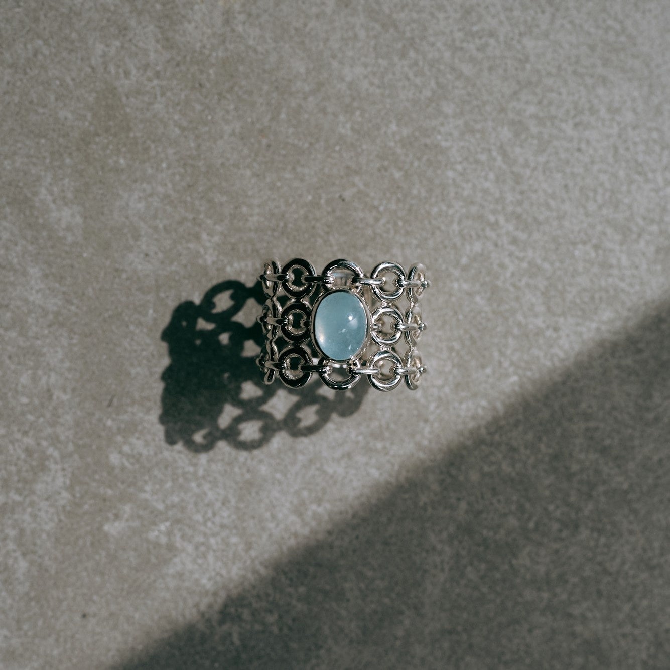 チェインメイルの輪とリンクした中央のオーバル型の石が存在感を放つ。