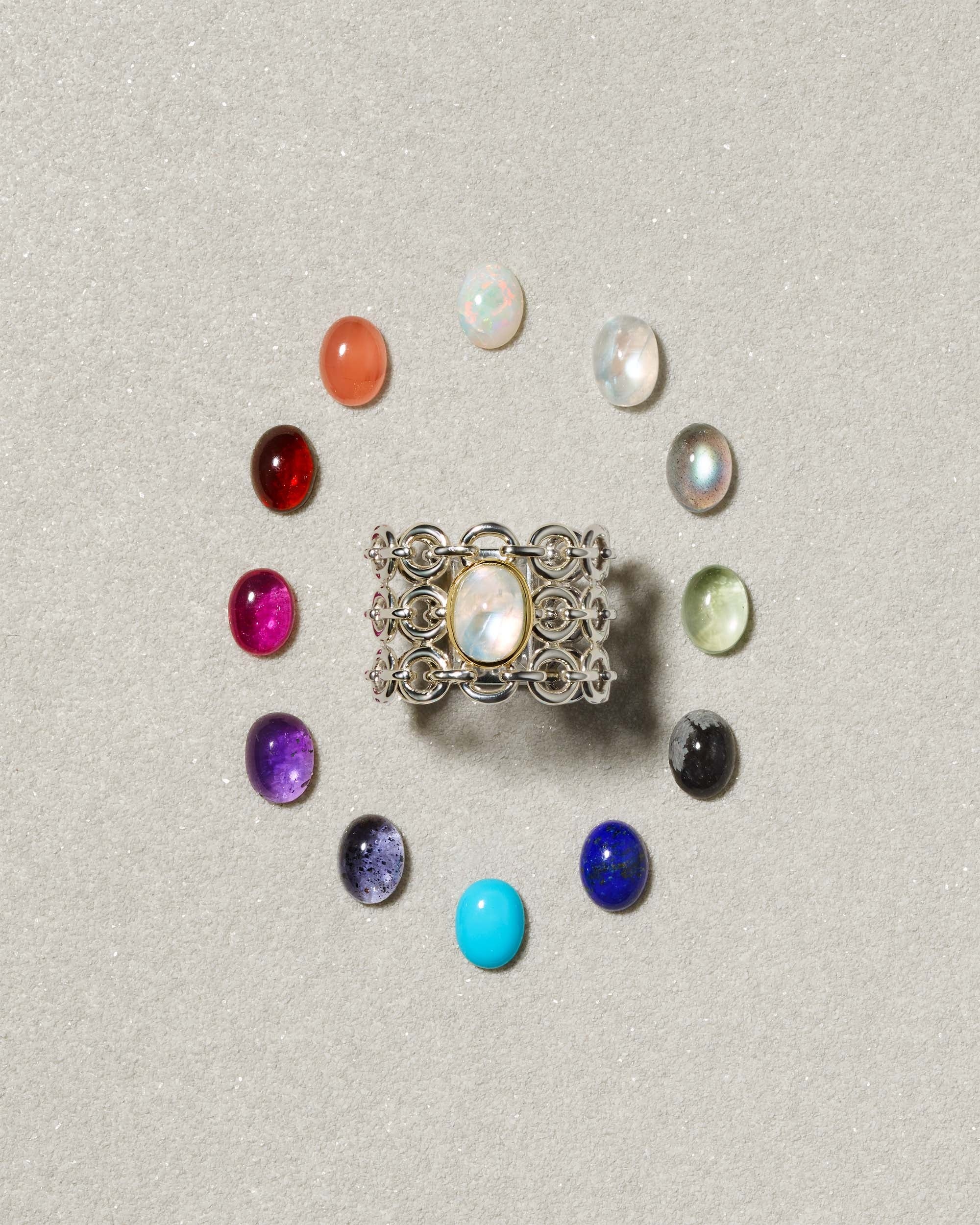 人気のメイルズ・リングを石枠の素材と天然石を組み合わせてオーダーいただけます。