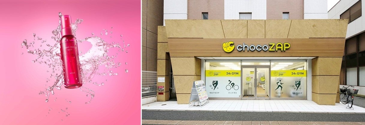 株式会社コーセー(本社:東京都中央区、代表取締役社長:小林 一俊)とRIZAP グループ株式会社(本社:東京都新宿区、代表取締役社長:瀬戸 健)は、RIZAP グループ連結子会社であるRIZAP株式会社のコンビニジム「chocoZAP(チョコザップ)」の新事業「chocoZAP Partners(チョコザップ パートナーズ)」において、コーセーが展開する「メイク キープ ミスト EX +」とコラボレーションした「ちょこっとキレイ キャンペーン」を2024年6月1日(土)から開始いたします。顔に吹きかけるだけで汗や皮脂、こすれ、表情変化などによる化粧くずれを抑える当社の人気仕上げ用ローション「メイク キープ ミスト EX +」の広告やテスターをchocoZAP店舗内で展開する他、同商品が当たるプレゼントキャンペーンを実施します。
