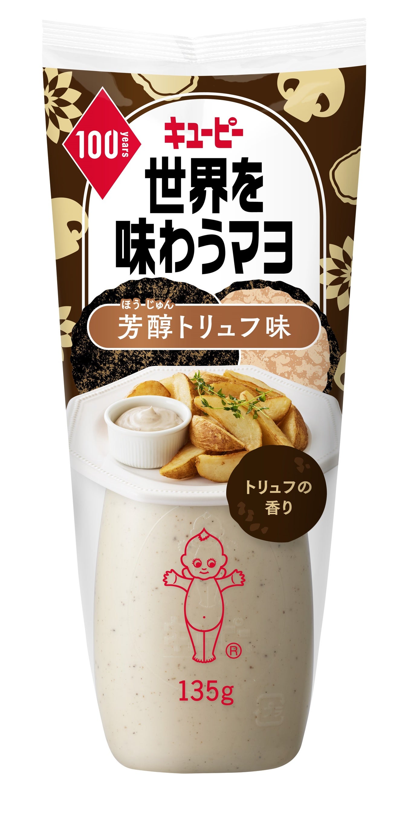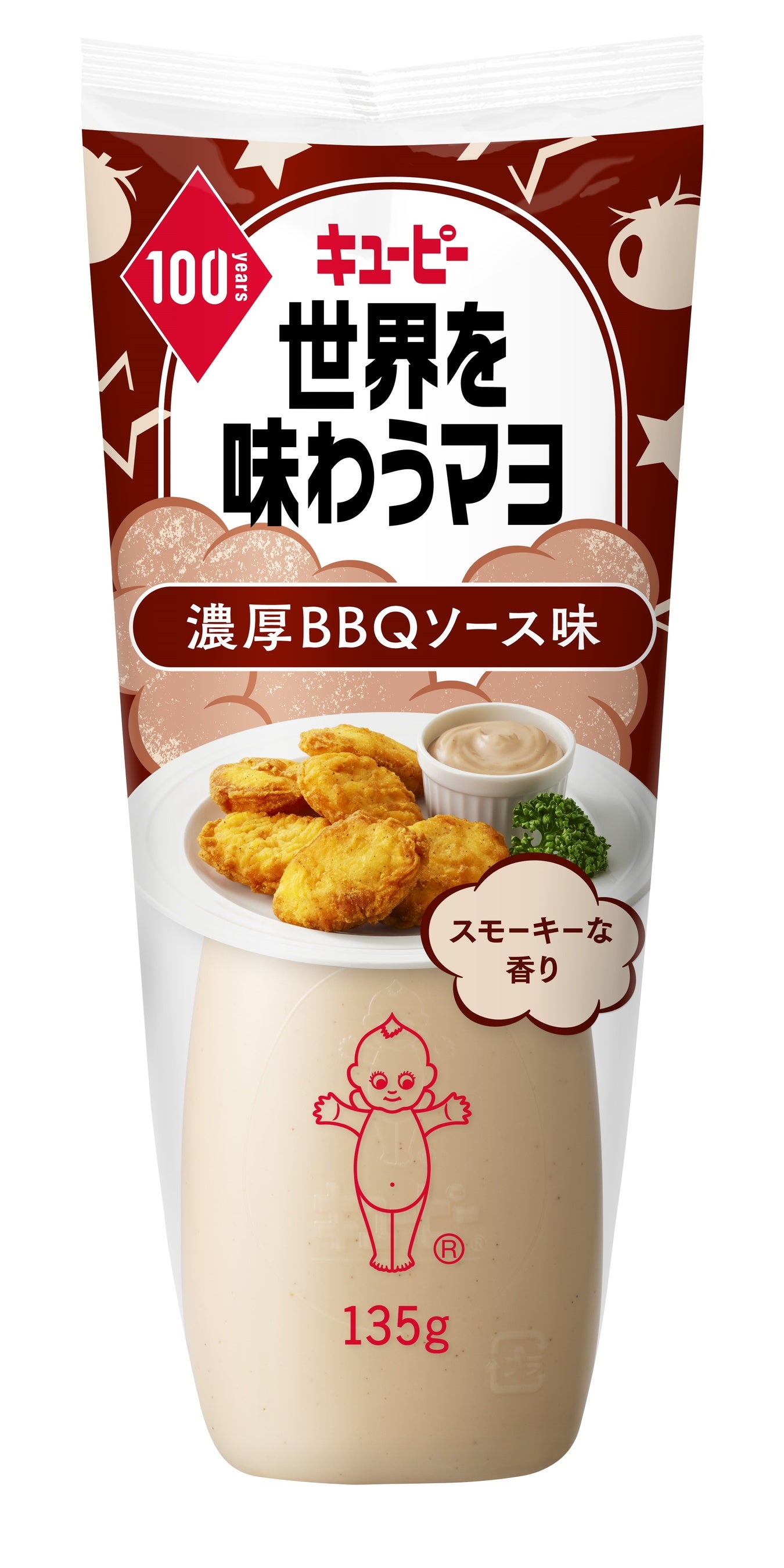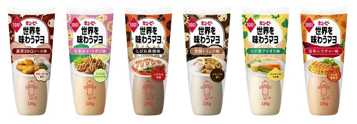 「世界を味わうマヨ」は、キユーピー マヨネーズのおいしさと、世界で親しまれているさまざまな調味料を融合させた、100周年を迎えた今だけ楽しめる数量限定品です。「濃厚BBQソース味」「甘辛スイートチリ味」「しびれ麻辣味」「芳醇トリュフ味」「コク深アイオリ味」「旨辛シラチャー味」の6品を、2025年2月から2カ月ごとに2品ずつ発売します。
