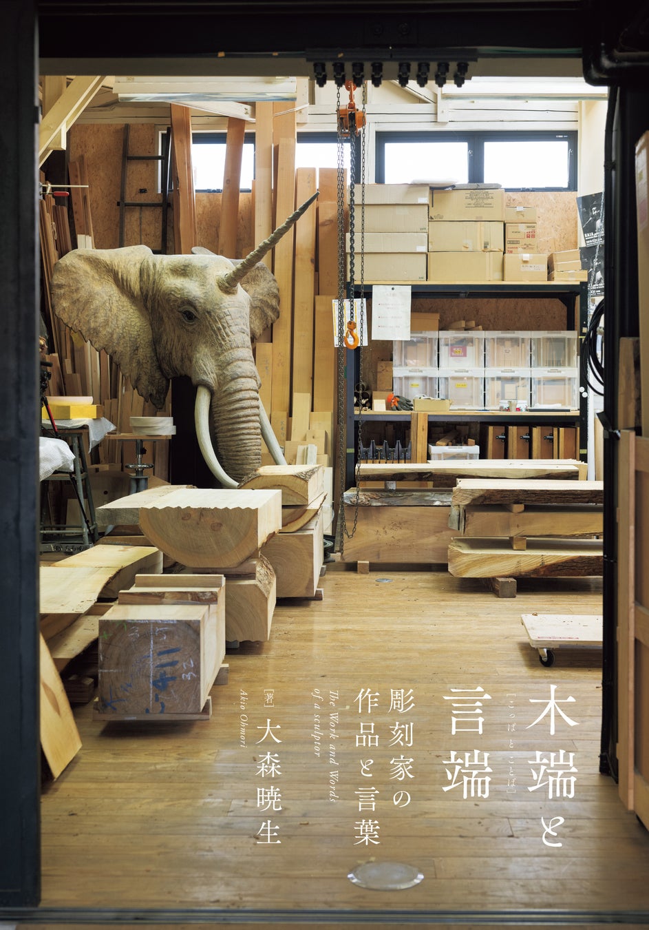 6月7日(水)に刊行される『⽊端と⾔端ー彫刻家の作品と⾔葉ー』は、彫刻家・⼤森暁⽣の作品と⾔葉で編んだフォトエッセイ的作品集。タイトルの「⾔端(ことば)」とは著者の造語で、⾃らの創作活動の中で「⼰の⾝体から削り出した⾔葉の断⽚」を意味しており、原⽊にノミを⼊れ作品を彫り出していく過程で⾶び散る「⽊端(こっぱ)」になぞらえています。