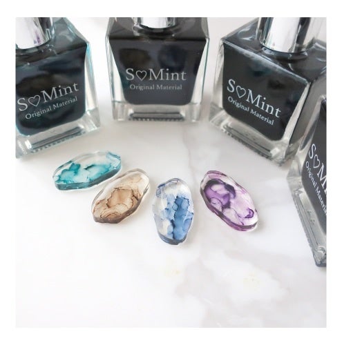 水彩画のような風合いを出せるインク「イージーニュアンスインク」。ニュアンスネイル、天然石ネイルには欠かせないインクです。
