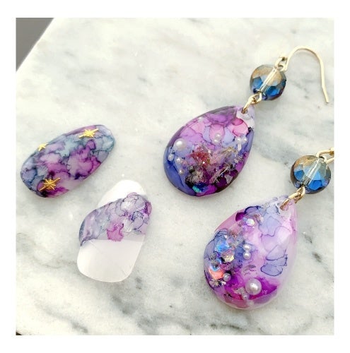 薄める必要が無い丁度良い濃度のインクとなっており、インクアートが苦手な方でも簡単にインクアートが楽しめます。レジンの着色にも使用できるのでアクセサリーづくりにもおすすめです。