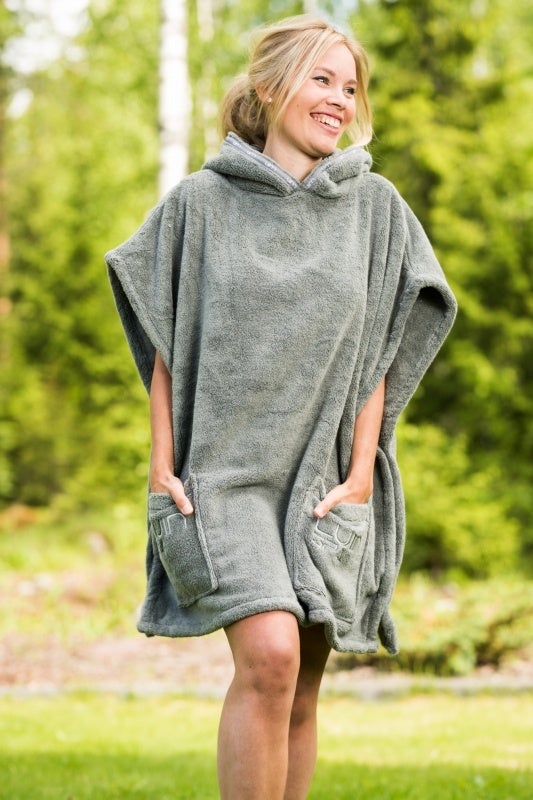 湯上り、サウナ後、アウトドア、部屋着としても使用できる、吸水性の良いふかふかタオル生地のポンチョ。
