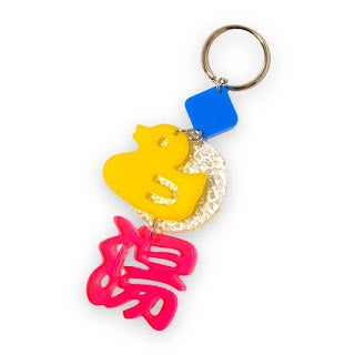 お好みのアクリルパーツをお客様にお選びいただき、それらを組み合わせてキーホルダーやピアス、イヤリングなどの
