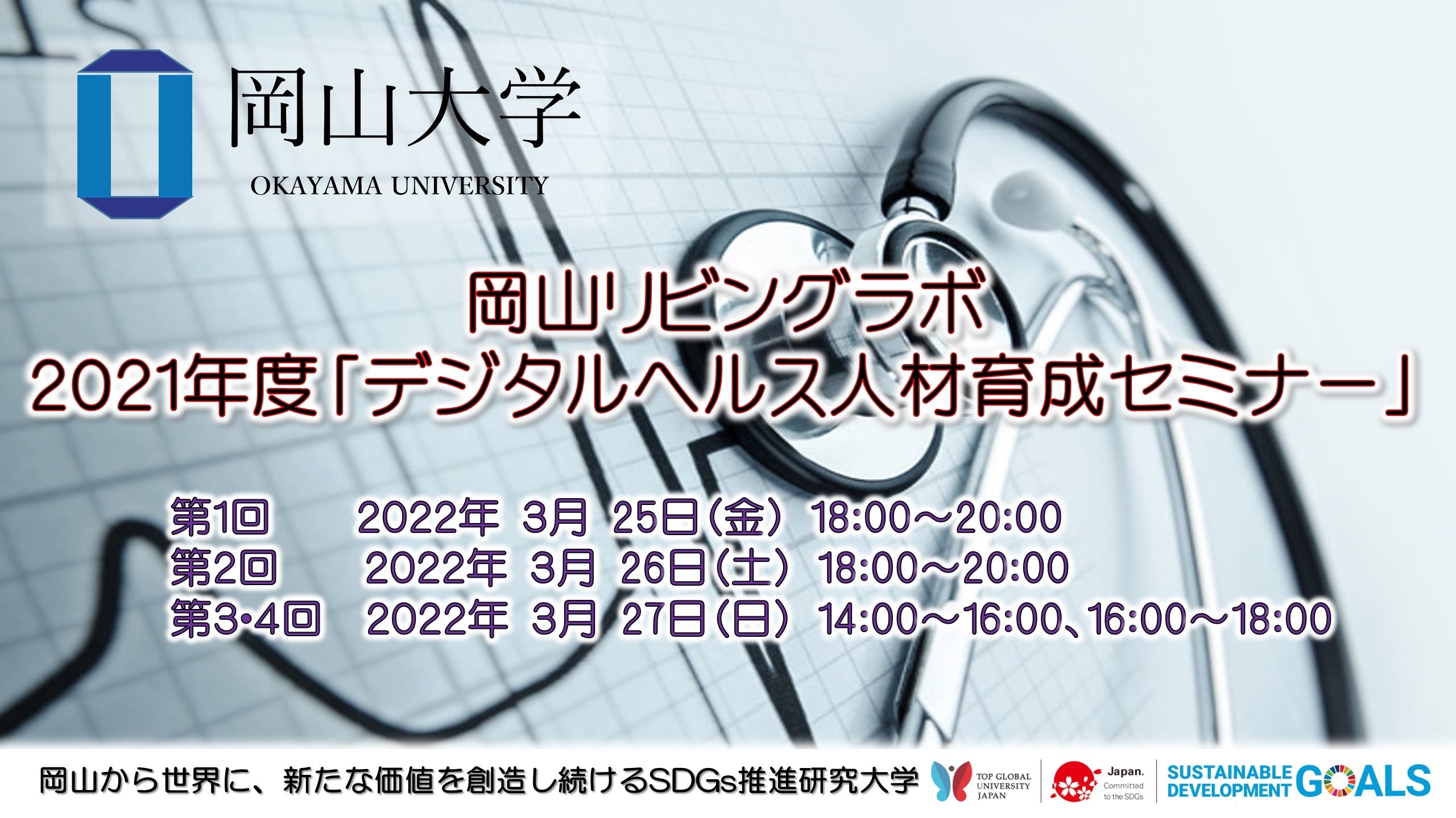 【岡山大学】岡山リビングラボ 2021年度「デジタルヘルス人材育成セミナー」(全4回)〔3/25~27〕