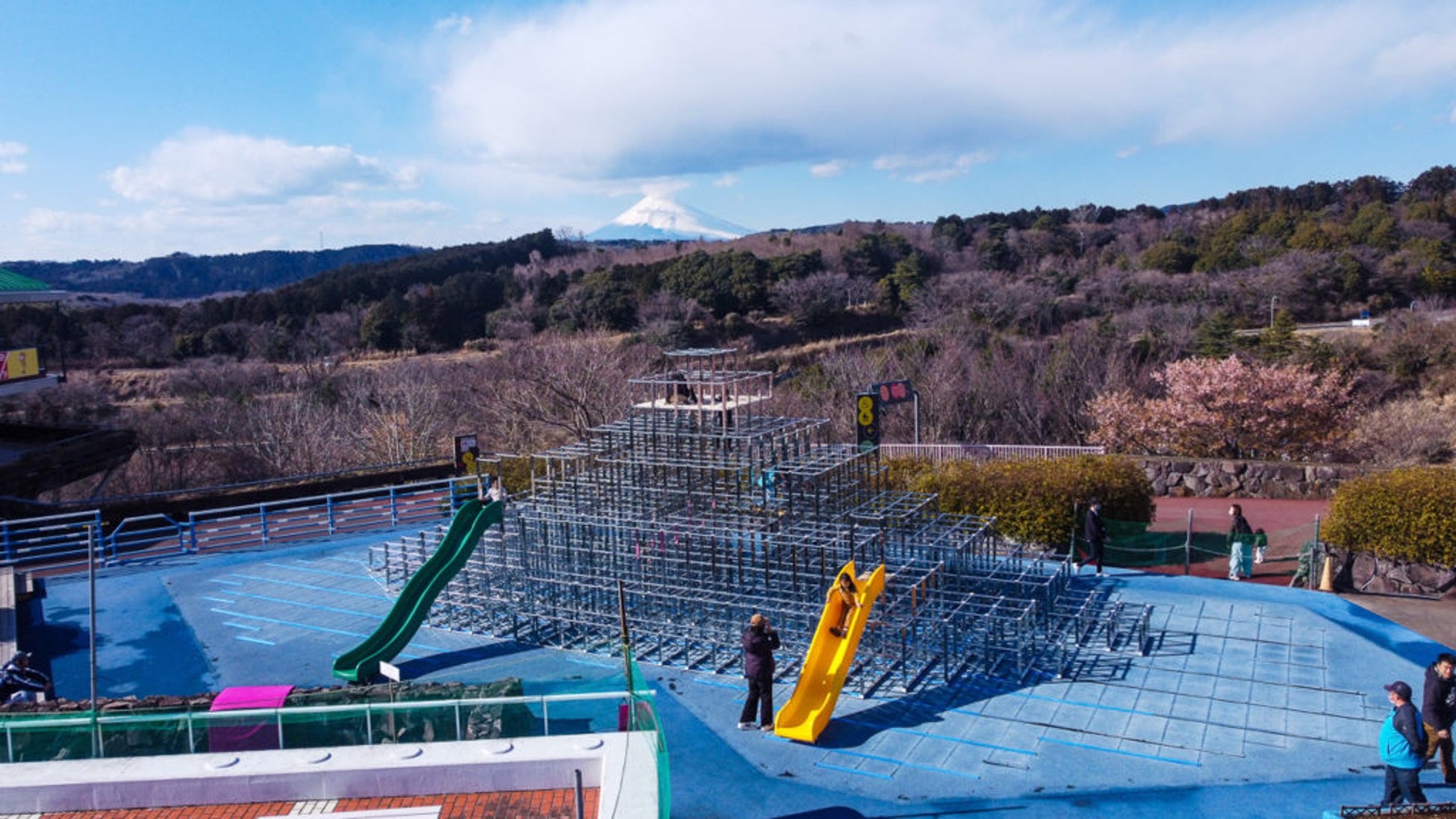伊豆の「自転車の国サイクルスポーツセンター」にある、日本最大級のステンレス製巨大ジャングルジム「FUJISAN」に挑戦します。洞窟のような探検ルートや滑り台など、ワクワクする仕掛けが満載。登る楽しさだけでなく、冒険気分も味わえるアトラクションです。晴れた日には頂上から富士山を望むこともできます。床面にはクッションマットが敷かれており、安全に配慮された環境で思いきり楽しめます。
