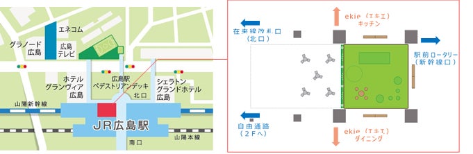 広島駅構内の商業施設ekie(エキエ)の一部店舗では、芝生ひろばを利用された小学生以下のお客様向けに特典をご用意しています。詳しくは、現地の案内をご確認ください。