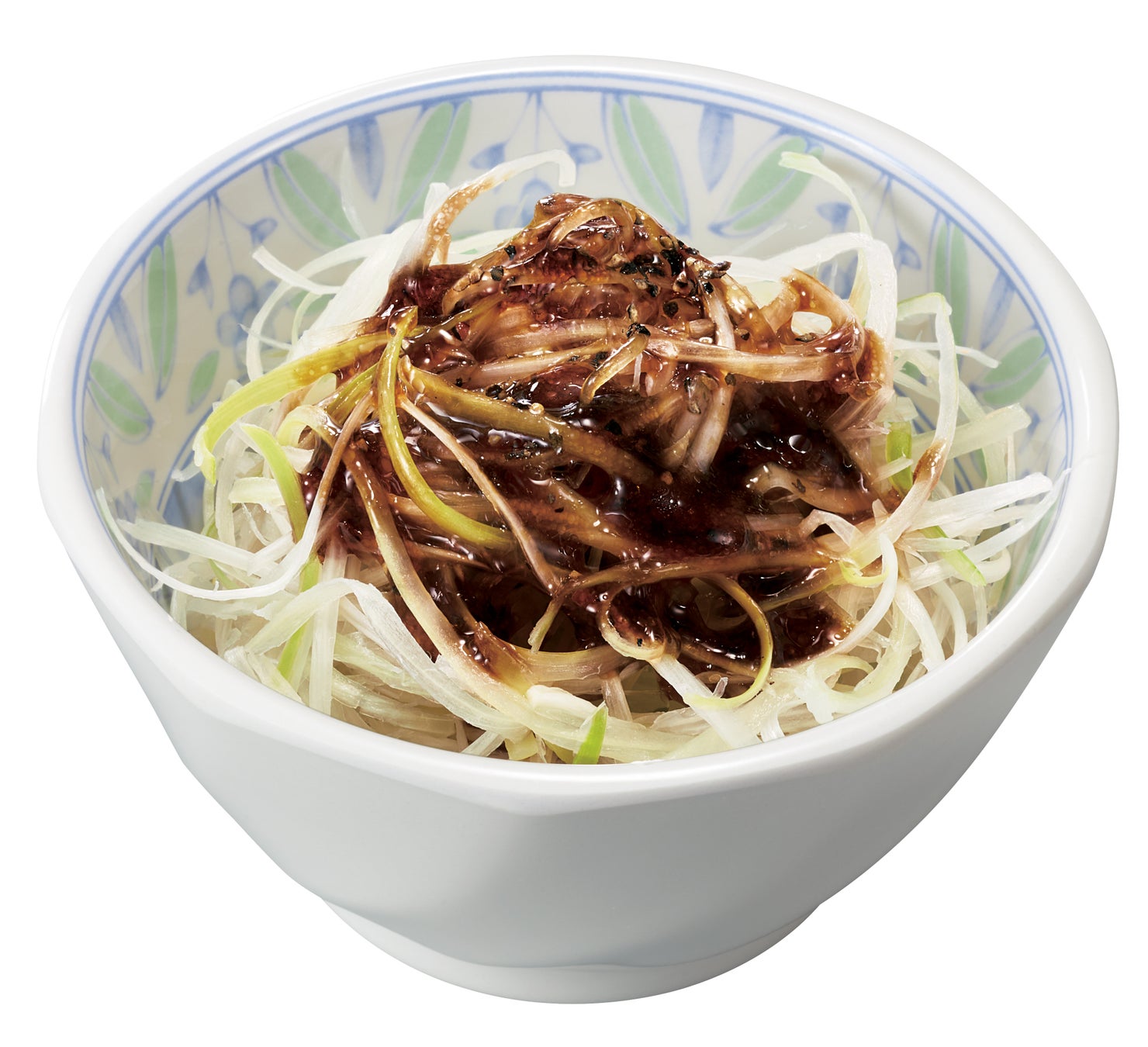 すき家特製“黒マー油”は、焦がしニンニクのコクと芳醇な旨みが特長です。シャキシャキで風味豊かな白髪ねぎとご一緒に、ニンニクの濃厚な味わいをお楽しみください。