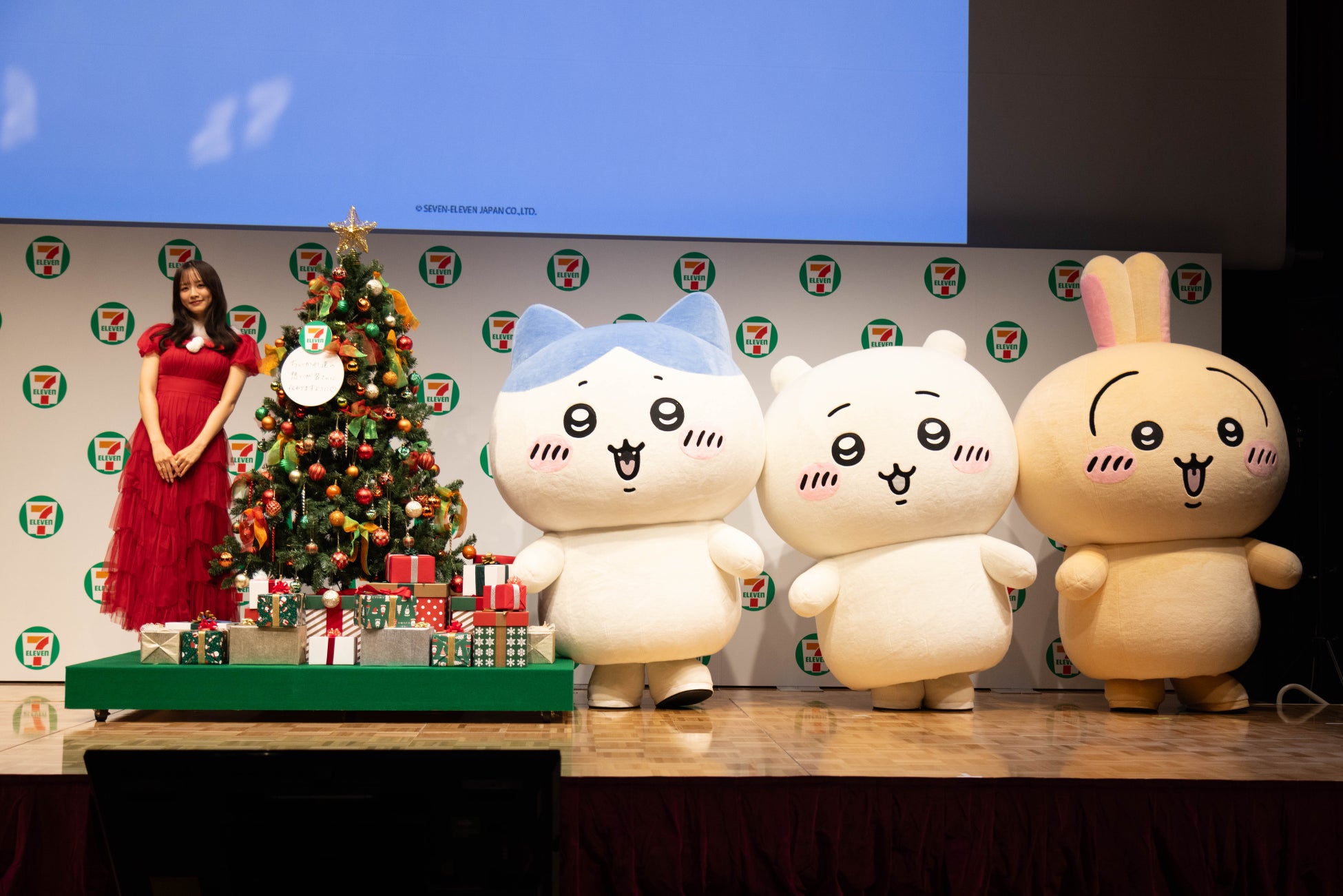 株式会社セブン‐イレブン・ジャパン(本社:東京都千代田区、代表取締役社長:阿久津 知洋)は、人気キャラクター「ちいかわ」とコラボレーションしたクリスマスキャンペーン「ちいかわと冬をたのしんじゃお! セブン‐イレブン×ちいかわ」を、12月2日(火)から全国のセブン‐イレブン店舗で開催いたします。本キャンペーンに先駆けて、11月28日(金)には、「ちいかわと冬をたのしんじゃお! セブン‐イレブン×ちいかわ」PR発表会を開催。当日は、株式会社セブン‐イレブン・ジャパン 執行役員マーケティング本部長 岡嶋則幸より、本キャンペーン施策の内容および各商品について説明しました。さらに、スペシャルゲストとして森香澄さんが登場。さらに、ちいかわ・ハチワレ・うさぎもサプライズで駆けつけていただき、会場を盛り上げました。