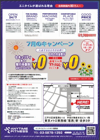 エニタイムフィットネス葛西店を、2024年8月5日(月)より場所を新たにリニューアルオープンいたします。