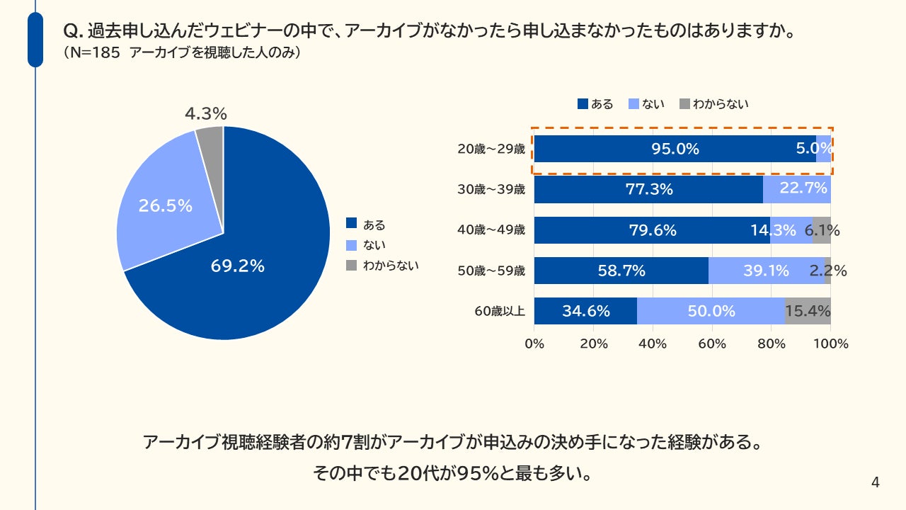 約7割のウェビナー視聴者が「アーカイブ配信が申し込みの決め手となった経験あり」。視聴者と企業間の意識調査結果