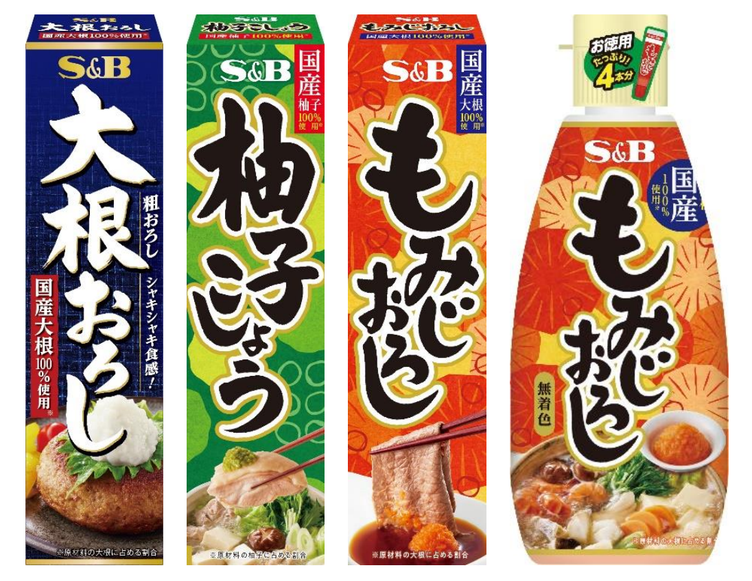 素材の風味を楽しむ 使い方無限大のS&Bチューブ調味料「大根おろし」 9月5日 新発売「柚子こしょう」「もみじおろし」「お徳用もみじおろし」9月5日 リフレッシュ
