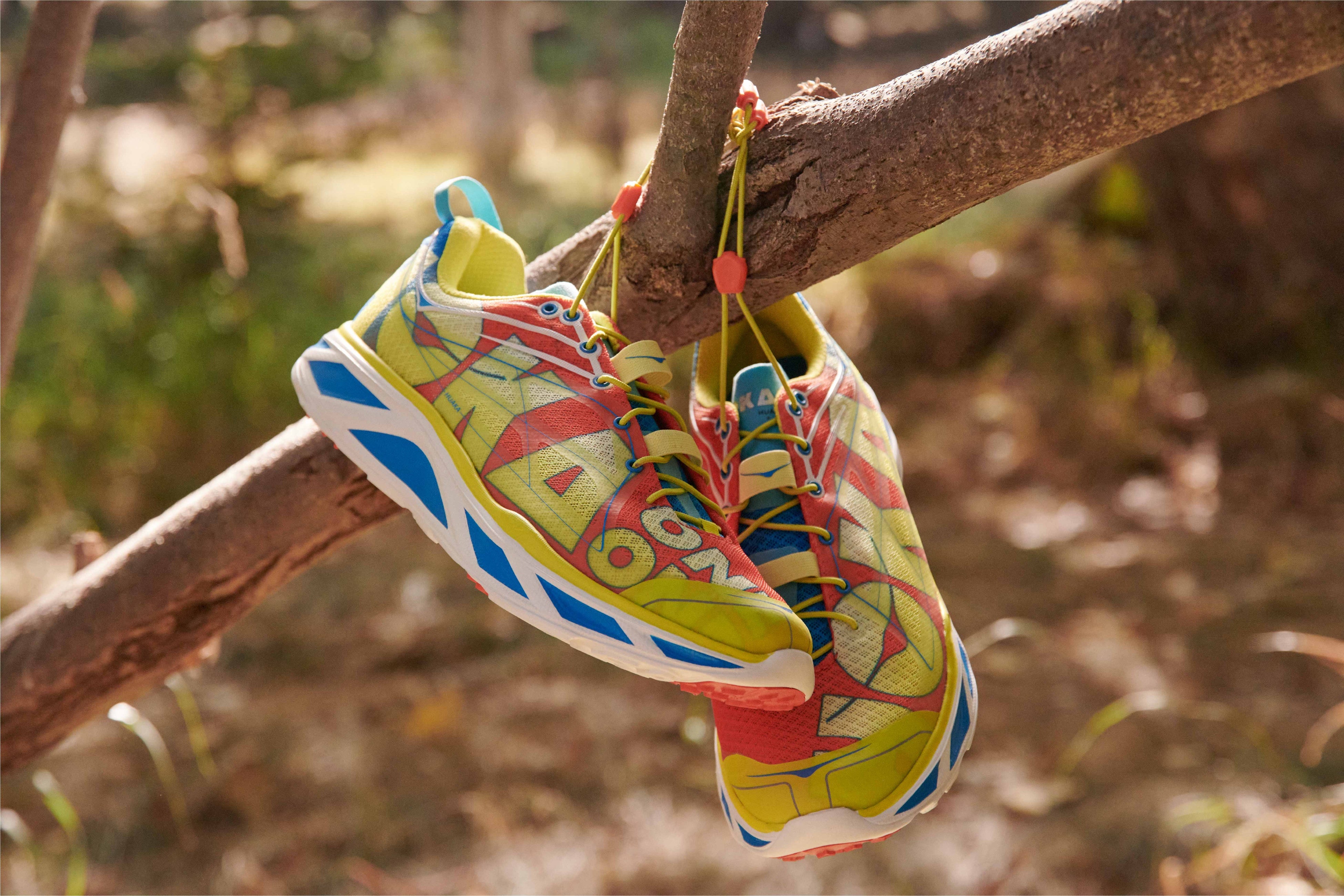トレイルレーシングシューズのアーカイブモデル「HUAKA 1」と「HUAKA 2」の長所を併せ持った復刻モデル。その機能性と快適性はそのままに、ライフスタイルシューズとして登場します。フラットニットアッパー、着圧のオーバーレイ、オーバーサイズのHOKAロゴにより、人々を振り向かせるようなデザインを生み出しました。ソール部分にはオリジナルのEVAミッドソール、滑りにくいラバーアウトソールを備え、快適な履き心地を提供。アッパー、タン、シューレースには100%リサイクルポリエステルを使用し、環境に配慮しています。