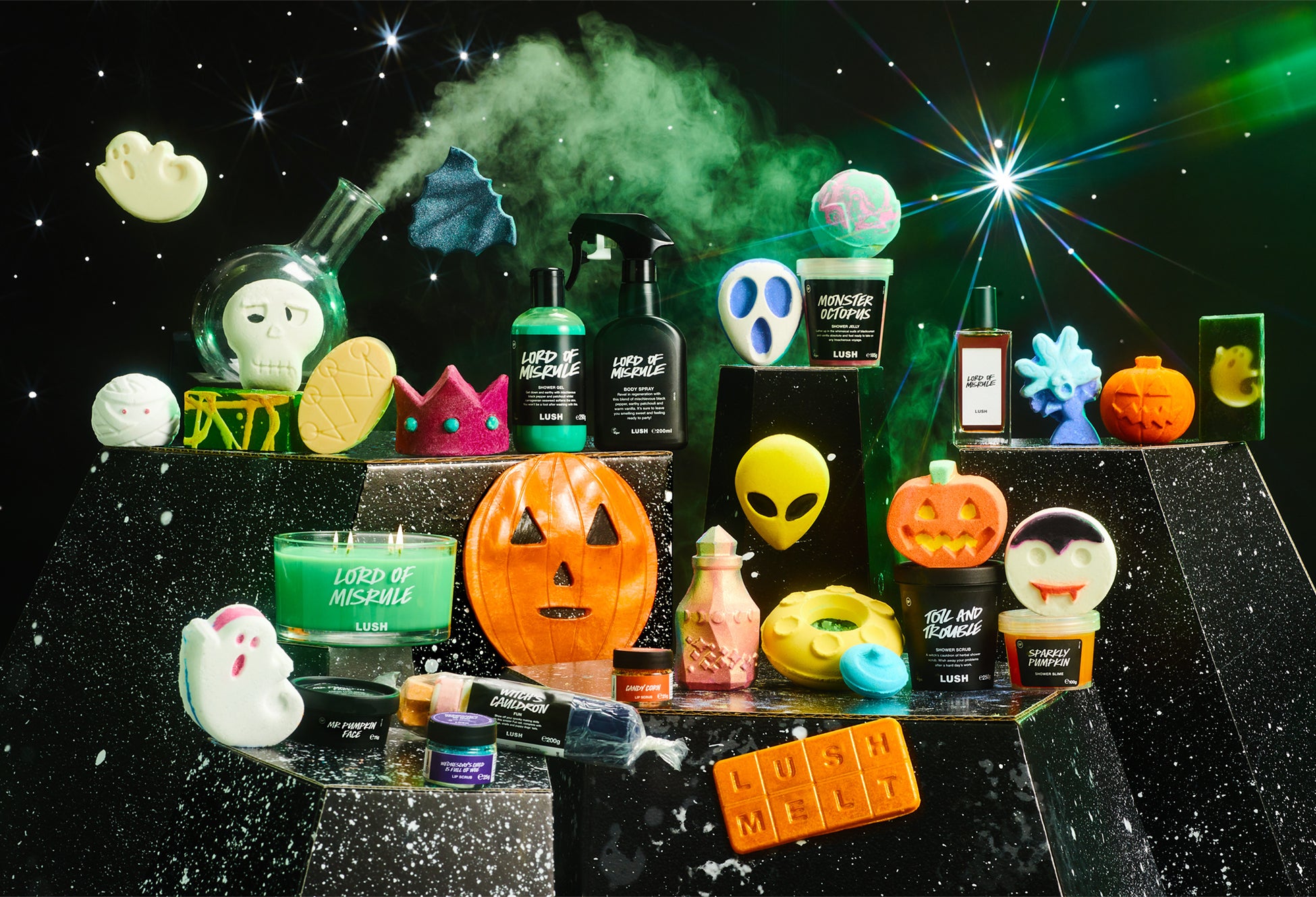 ラッシュのハロウィンを代表する香り『ロード オブ ミスルール』が導く今年のコレクションは、大人気のバスボム(入浴料)やバブルバー(泡風呂用入浴料)をはじめ、ボディケア・スキンケアアイテム等、昨年を超える総勢50種のアイテムをラインナップ。ワクワクするようなデザインやユニークなテクスチャーのハロウィンコレクションで、内に秘めたいたずら心を解き放ちましょう!