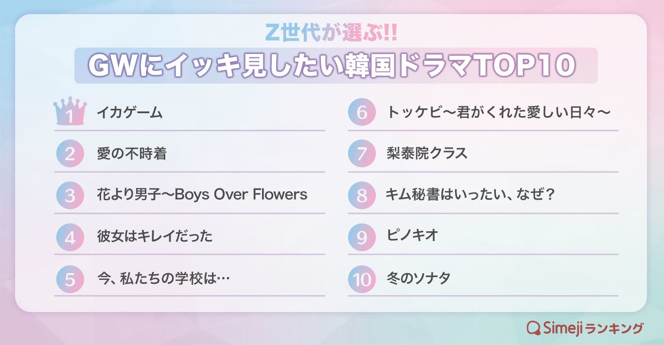 【Simejiランキング】Z世代が選ぶ!!「GWにイッキ見したい韓国ドラマTOP10」