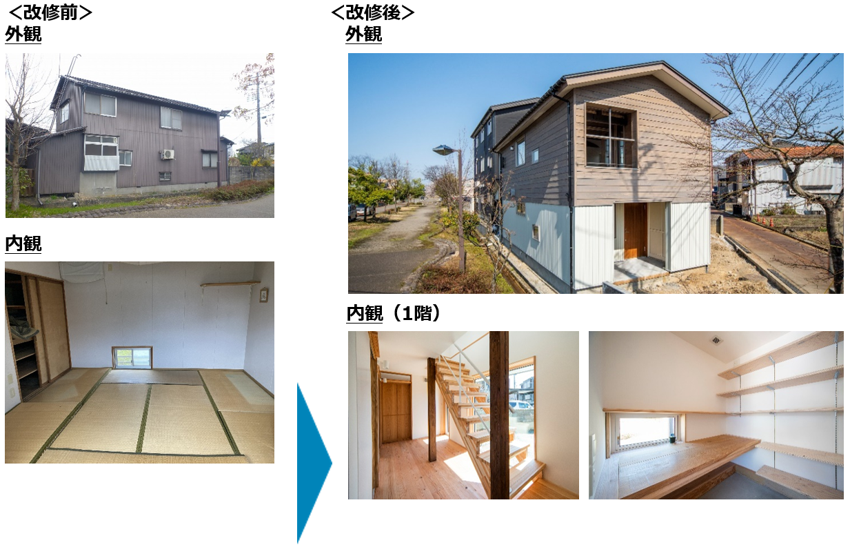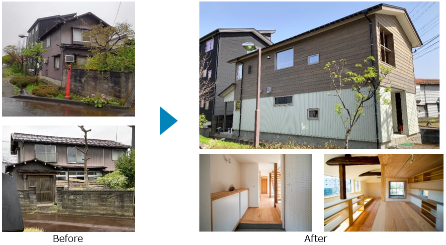 新潟県長岡市にある本物件は、過去に周辺地域が宅地開発された利便性の高い土地に建つ築58年の住まいで、一般的な新築住宅(※2)を上回る「断熱」と「耐震」の性能向上にこだわり、高水準なリノベーションを実施した戸建住宅です。