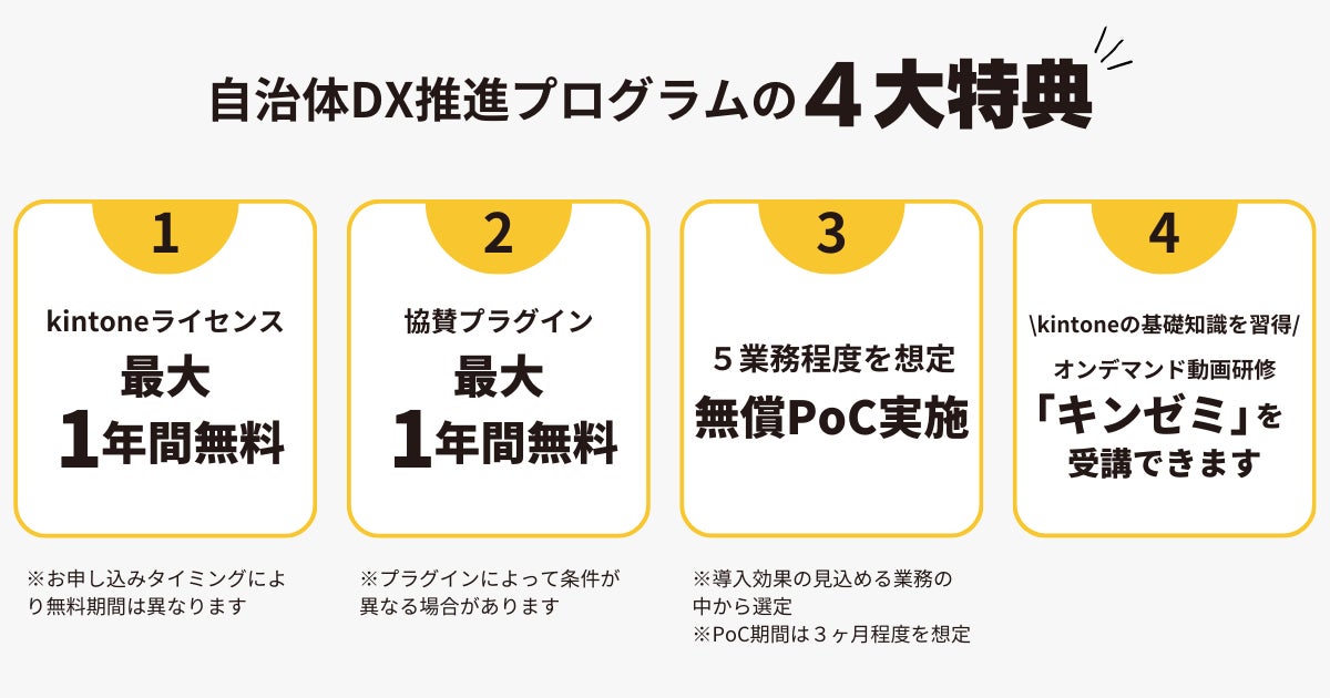 M-SOLUTIONSではkintoneを基盤とした行政業務のデジタル化をサポートする「自治体DX推進プログラム」を提供しています。