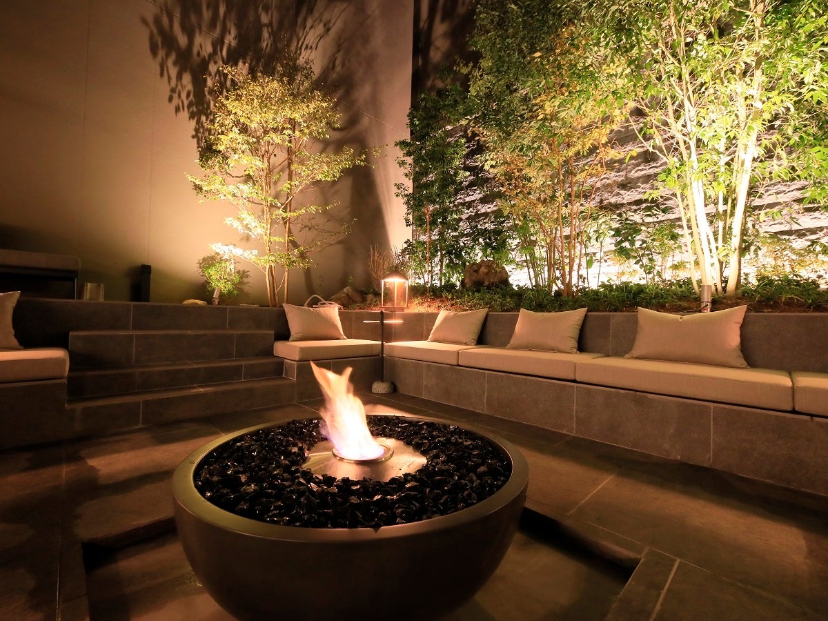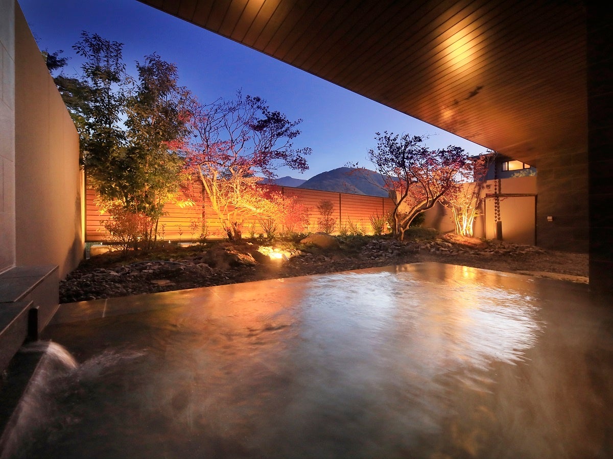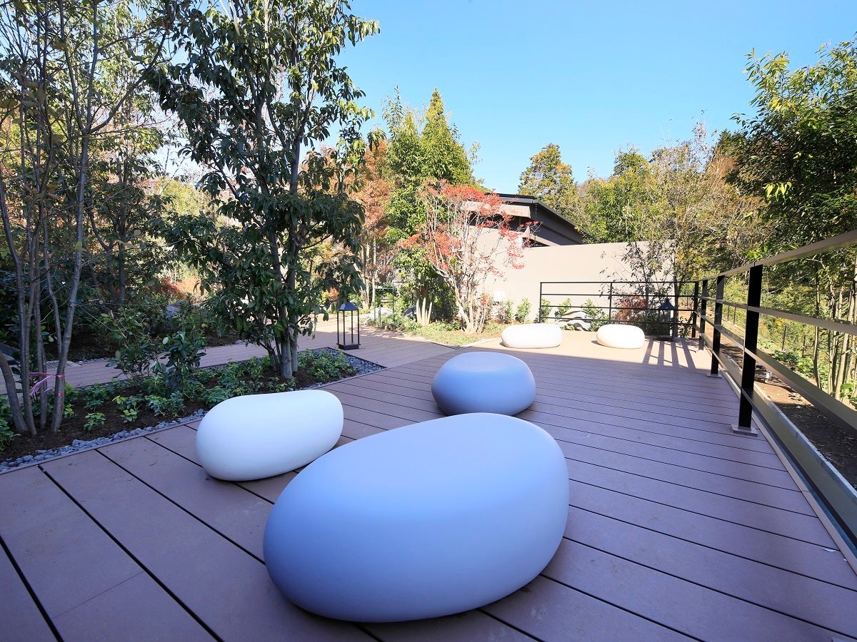 本館および温浴棟の間には、四季折々の箱根・仙石原の移ろいを感じられるテラスを設置。