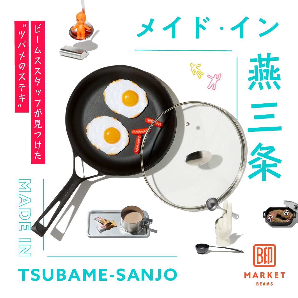 〈B印MARKET BEAMS〉は、2月3日(金)〜2月19日(日)に、東京・新宿駅構内の「BEAMS NEWS(ビームス ニューズ)」にて、POP UP SHOPを開催いたします。今回のPOP UP SHOPは、“B印MARKET BEAMS meets 燕三条”と題し、“感じる?クラフトマンシップ。”というコンセプトのもと、ツインバードの家電製品に加え、燕三条に拠点を置く4企業のキッチン用品を期間限定でラインナップいたします。世界に誇る洋食器や金属加工の技術をもつ燕三条にビームススタッフが直接足を運び、職人の手仕事のこだわりや技術を実際に見て触れることで、長年職人たちが培ってきた技術や受け継がれてきた想いを感じるアイテムを厳選しました。音楽や古着、サーフィンなど日々の生活を楽しむビームススタッフのリアルな視点で、おすすめのアイテムをご紹介します。