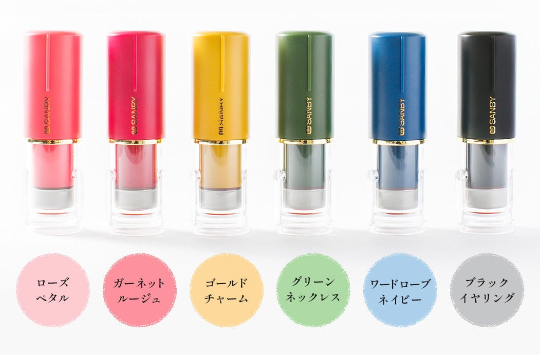 今回「366日の花ずかん」シリーズから新たに登場したネーム印「CAMILA(カミラ)」は、まるでリップスティックのようなスタイリッシュなデザインが特徴。美しいボディーカラーはこちらの6色から選べます。