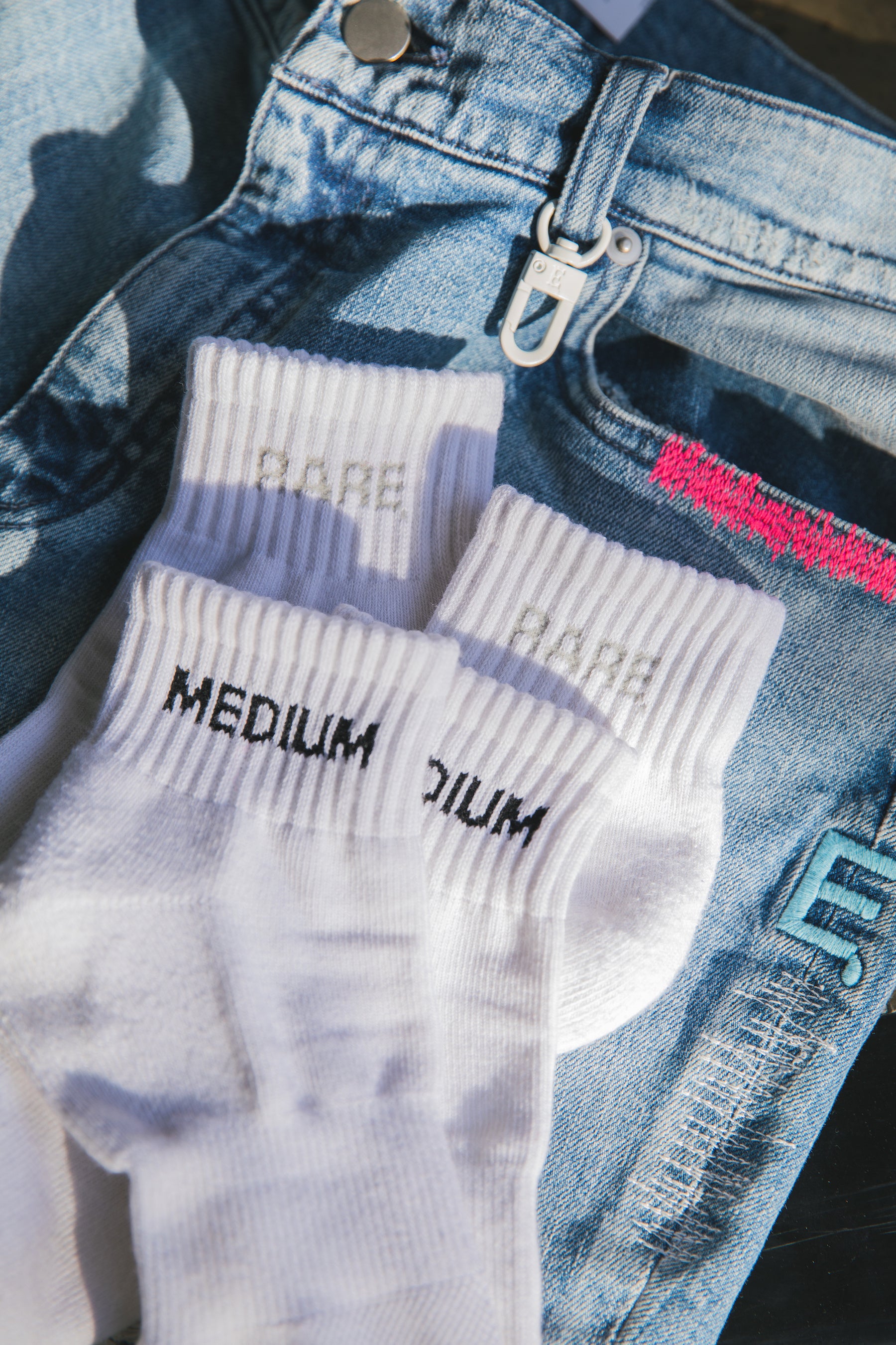 MEDIUM RAREの商品は全て日本で生産され、シルエットや生地、縫製まで徹底的に管理されています。また、アイテムの数々はストリートライクなものが多く、ラフでゆったりとしたフーディからナイロンジャケットやデニムなどの生地感を生かしたシルエットのアイテムなど、随所にこだわりを感じることができ、国内外問わず多くのVIPが好んで着用しています。