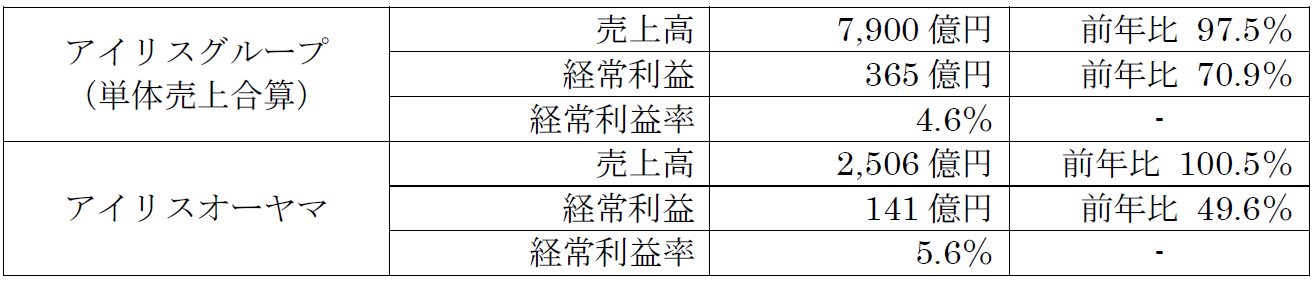 アイリスグループの2022年度決算(12月)は、売上高7,900億円、経常利益率4.6%、アイリスオーヤマ株式会社は、売上高2,506億円、経常利益率5.6%の見込みです。
