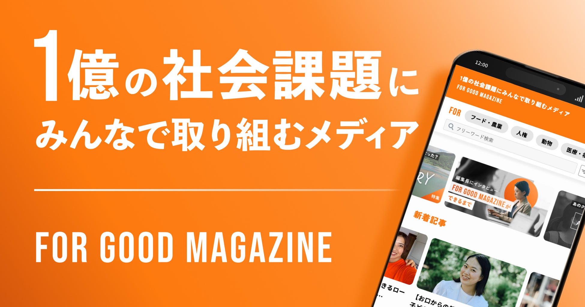 株式会社ボーダレス・ジャパン(本社:福岡県福岡市、代表取締役:田口一成)が運営する、社会を良くするプロジェクトに特化した掲載手数料0円のクラウドファンディング「For Good(フォーグッド)」(以下「For Good」)は、2022年5月13日にサービス開始してから、初となるオフィシャルメディア「For Good Magazine」(フォーグッド マガジン)をリリースいたします。