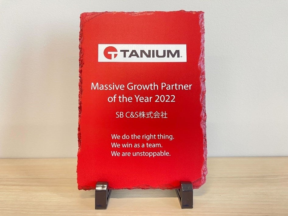 SB C&S株式会社(以下「SB C&S」)は、タニウム合同会社(本社:東京都千代田区、アジア太平洋日本地域プレジデント 兼 日本法人代表執行役社長:古市 力、以下「タニウム」)が発表した 2022年度のTanium Partner Awardにて、「Massive growth partner of the year」を受賞しましたのでお知らせします。