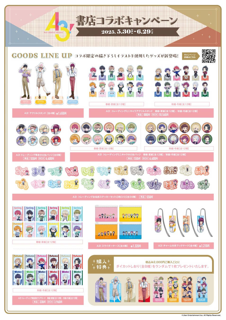 『A3!』描き下ろしイラストを使用したオリジナルグッズを販売するPOPUP SHOPを、キャンペーン対象書店のうち限定18店舗にて開催します。