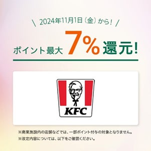 「対象のコンビニ・飲食店で最大7%還元!」お得に使える対象店舗に「ケンタッキーフライドチキン」が追加!