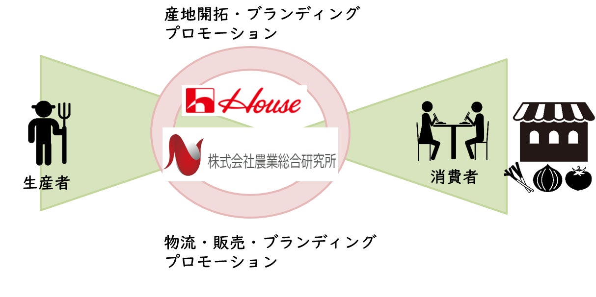 農業総合研究所は農産物をブランディングしてスーパーなどで展開する「産直事業」を行っており、ハウス食品グループと共に生産者へのヒアリングや訪問を通じて「また明日も食べたくなる野菜」となる野菜を選定し、スーパーなどへの販売を担当します。
