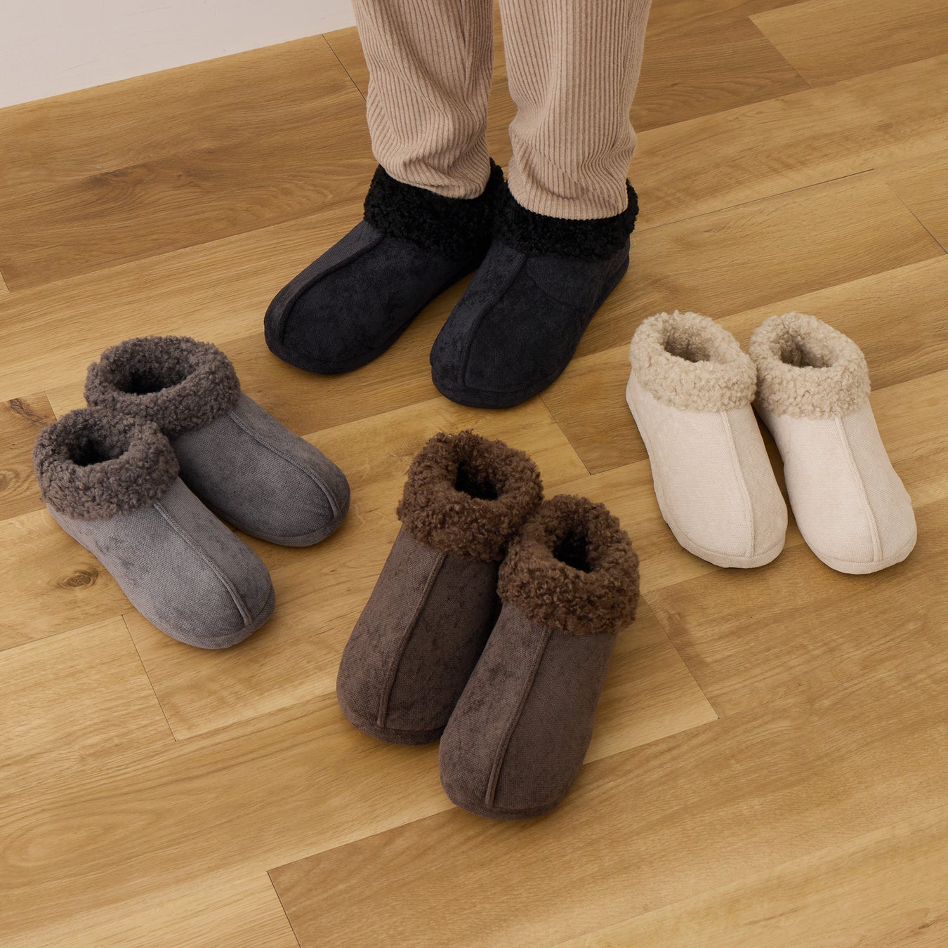 底は水がしみない素材で、フィット感抜群のバブーシュ。厚めのクッションで底冷えしにくく、快適な履き心地。毛皮のイメージを再現するため、表面の生地糸をカットして毛感を出したデザインです。