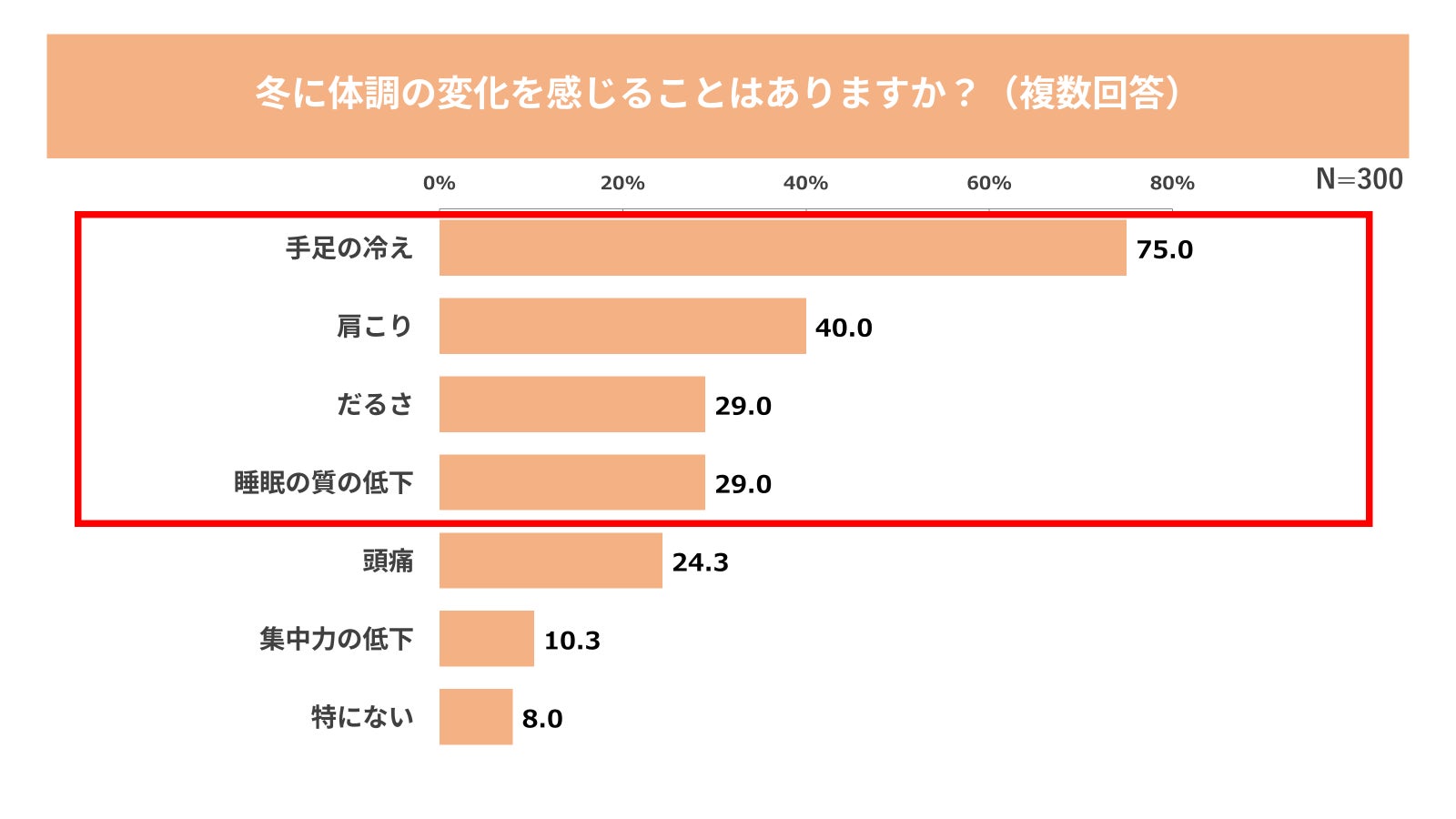 寒さや冷えが原因で睡眠の質に影響を与え、日常生活に支障をきたしていることが明らかとなりました。