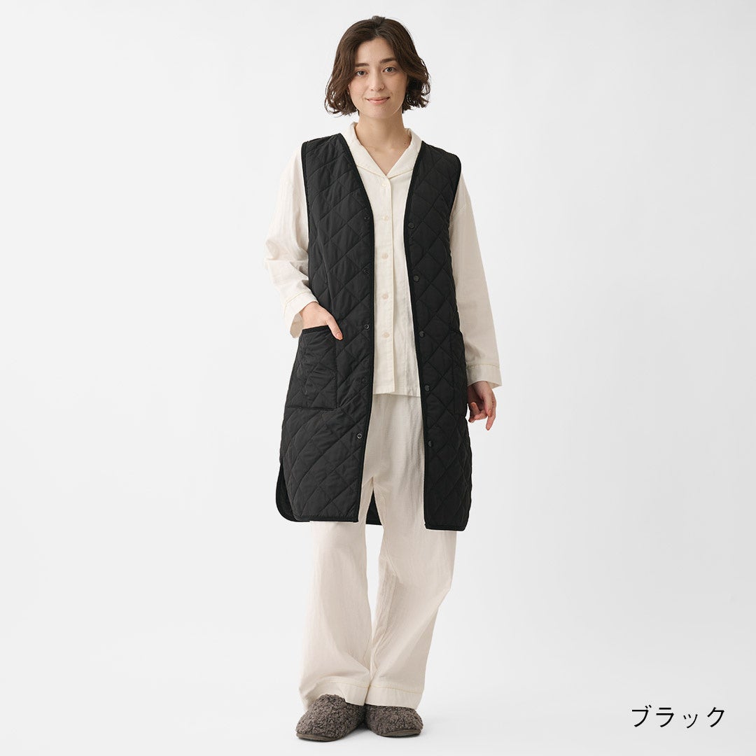 ◆ケユカリラックスウェア撥水中綿あたたかキルトロングベスト
