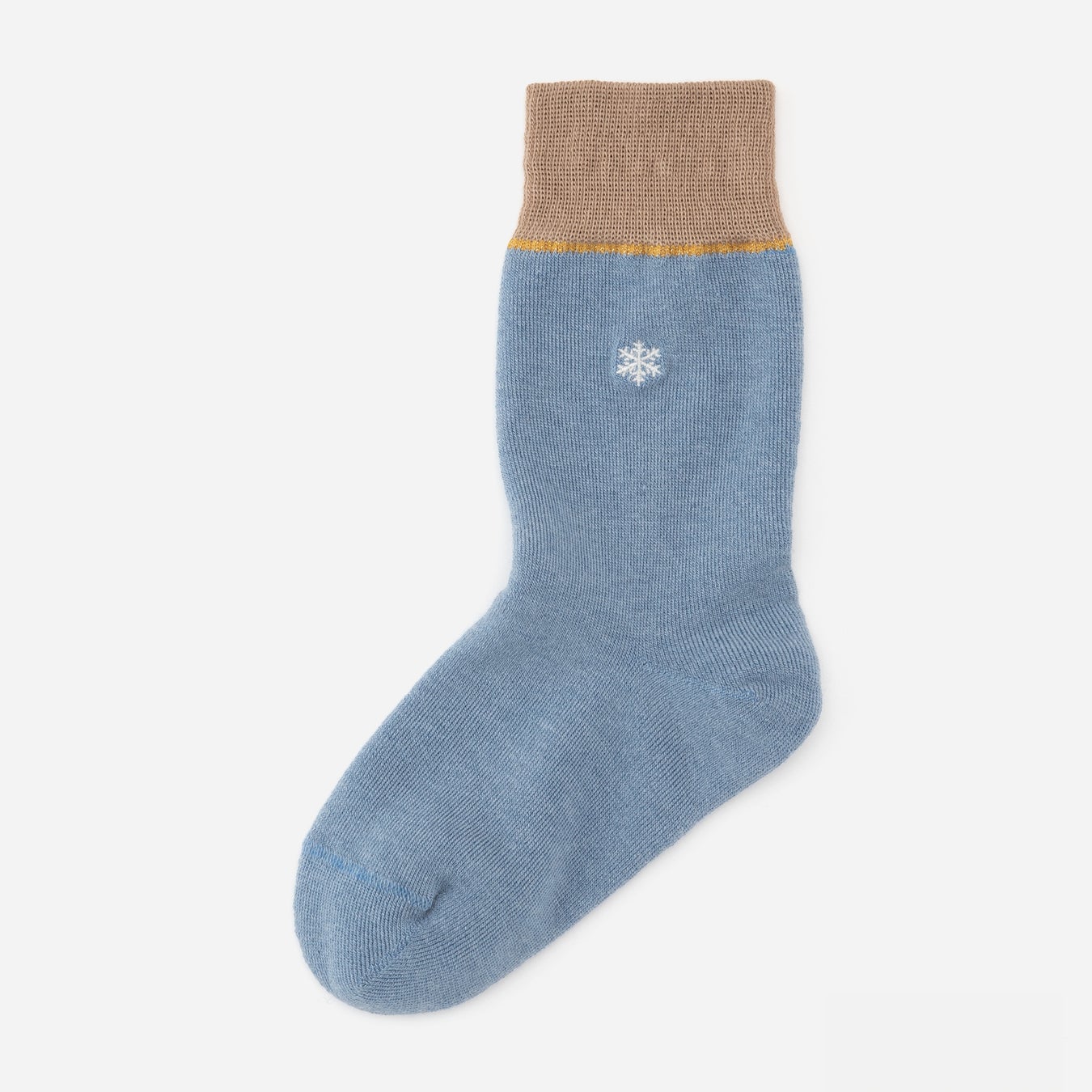 寒い季節にぴったりな機能糸を使用したソックス。吸湿発熱糸とアロエの保湿成分を練り込んだ糸で、乾燥を防ぎ温かさをキープ。内側全面パイル編みで空気を含み、足元をしっかり包んで温めます。少し長めのクルー丈で寒さを防ぎ、消臭糸使用で気になるにおいもケア。雪の結晶柄の刺しゅうが施されたデザインで、ギフトにも最適です。