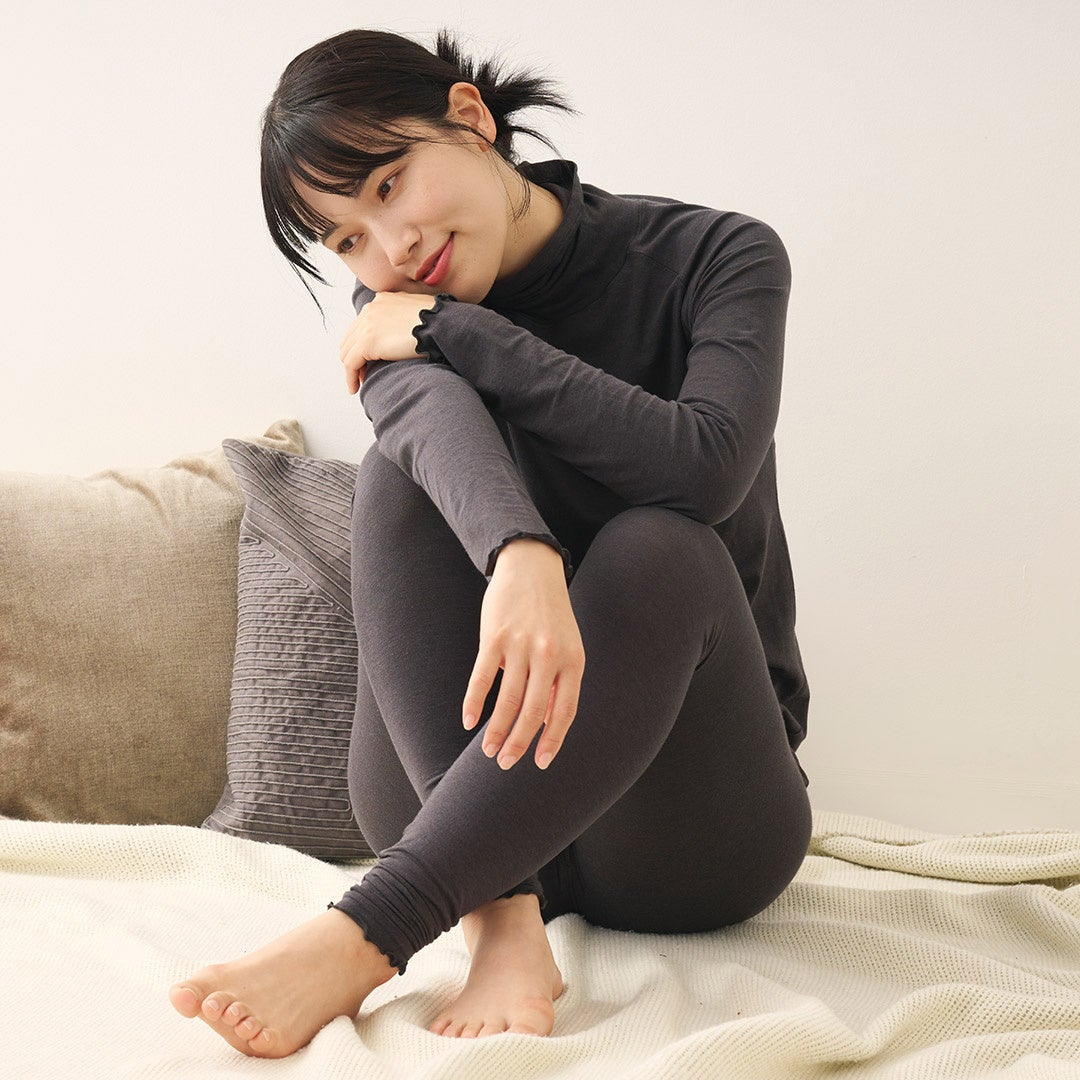首元・手首を冷気から防ぐ、パジャマの下に着る夜用インナー。今期は着丈を更に長くして、お尻が隠れる長さにアップデートしました。寒い冬も優しくお尻回りまであたためます。体を動かしやすい設計でさまざまな寝姿勢に対応しているため、睡眠中も心地よくお過ごしいただけます。ナイトインナーレギンスとのセット着用がおすすめです。