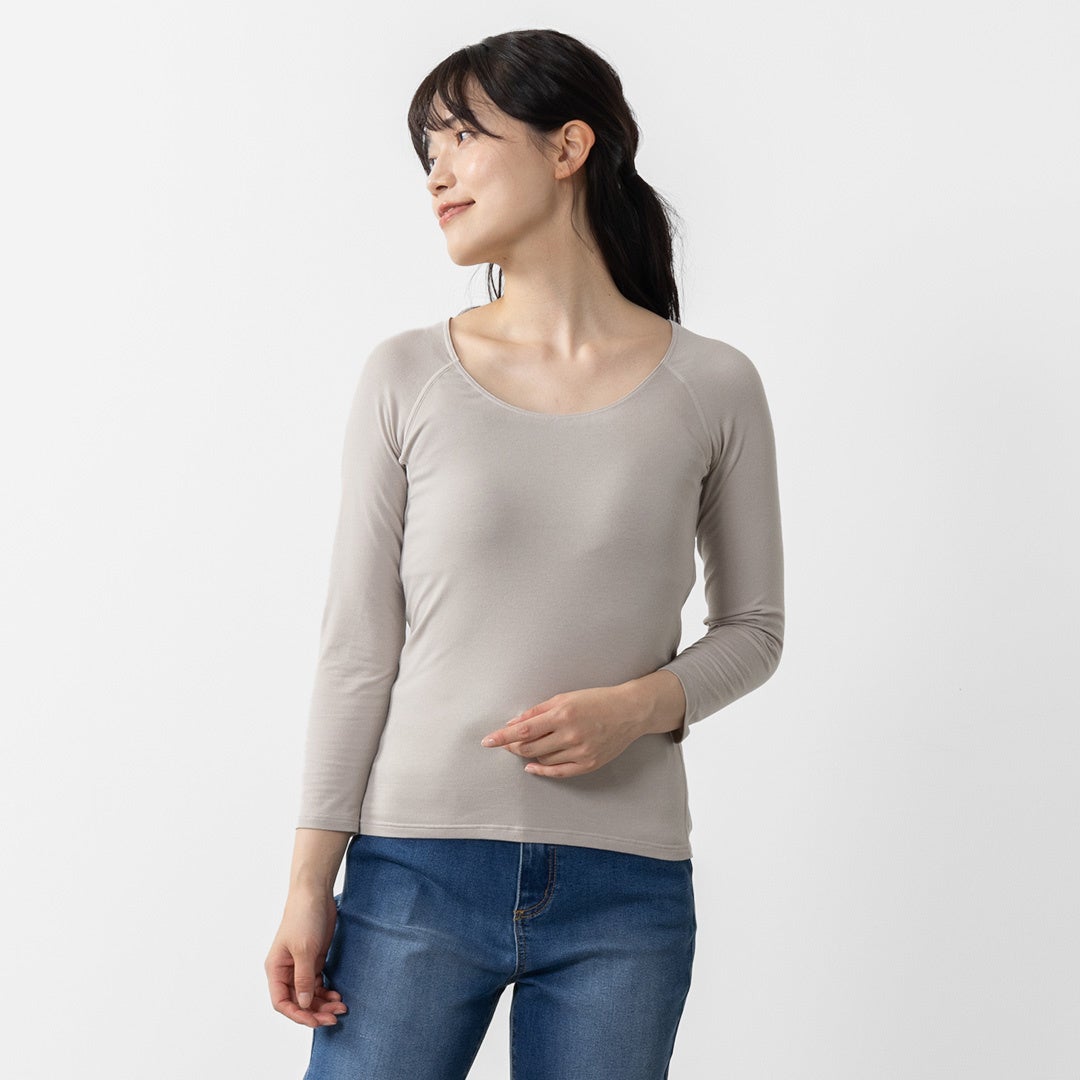 ◆ H 保湿Uネック発熱綿混あたたかインナー8分袖