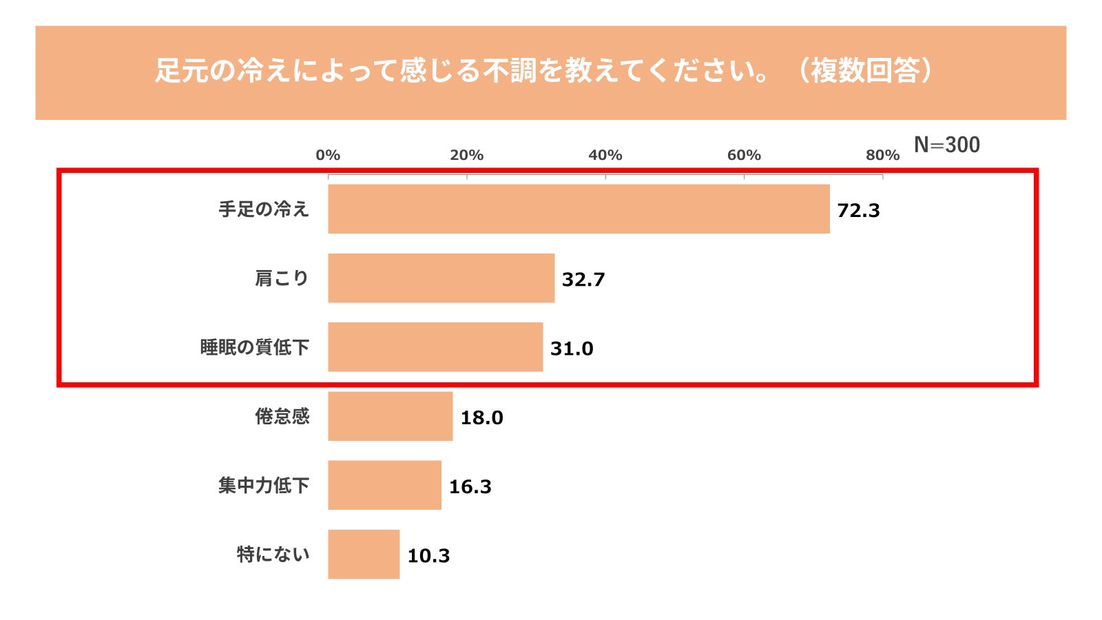足元の冷えによって感じる不調でも「手足の冷え」が最多。