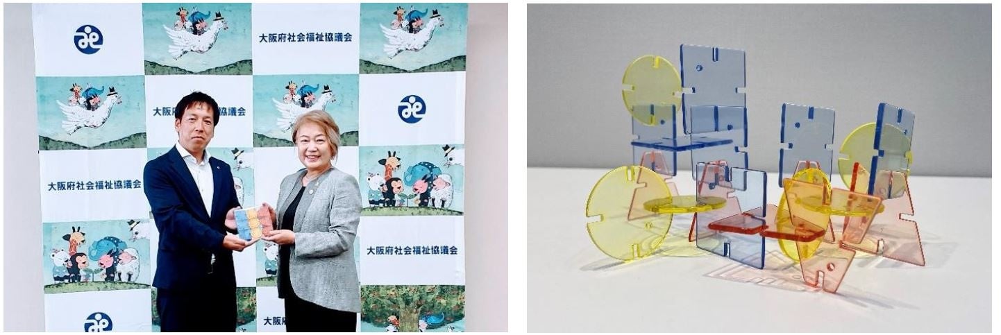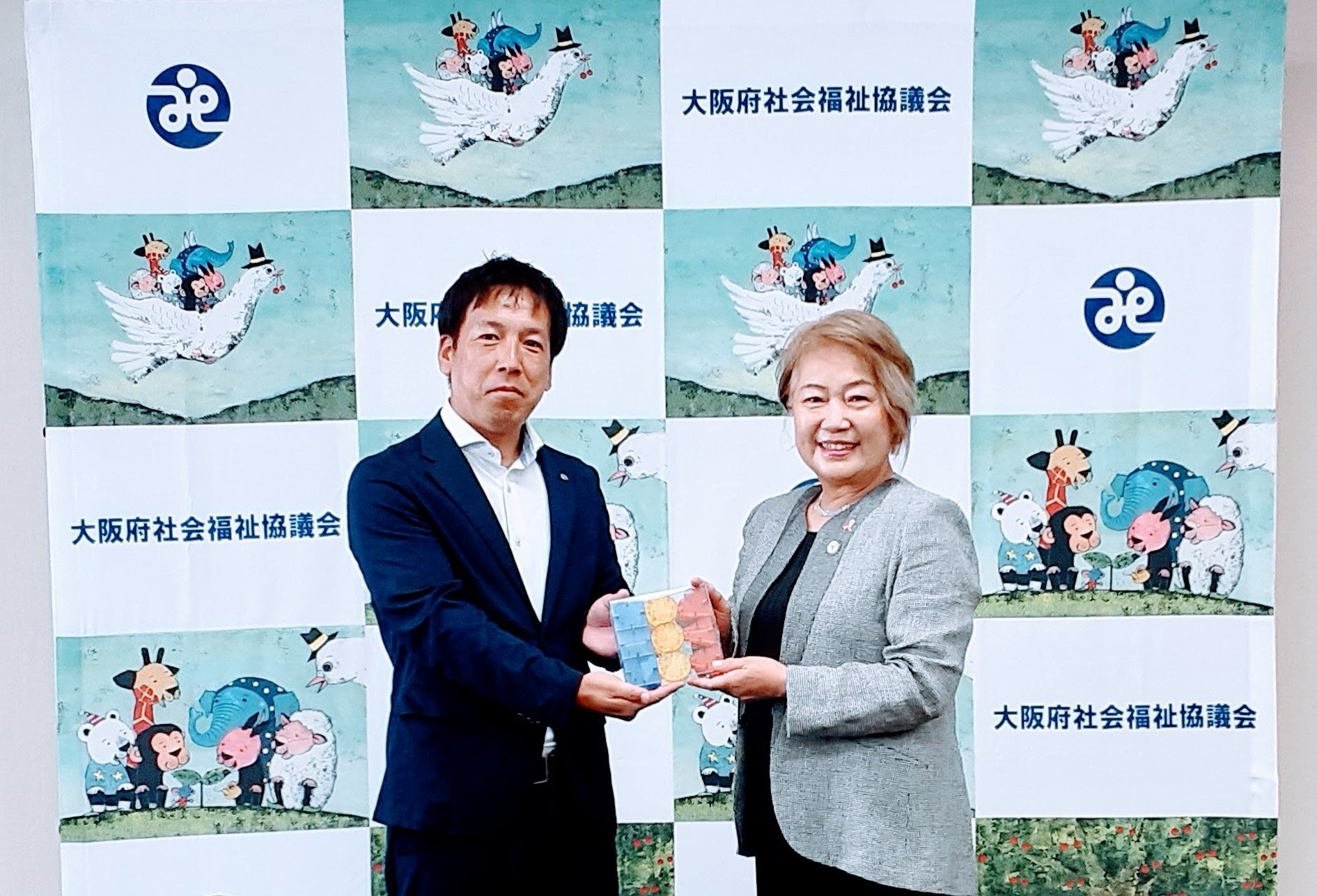大阪府社会福祉協議会での寄贈式 寄贈した知育玩具