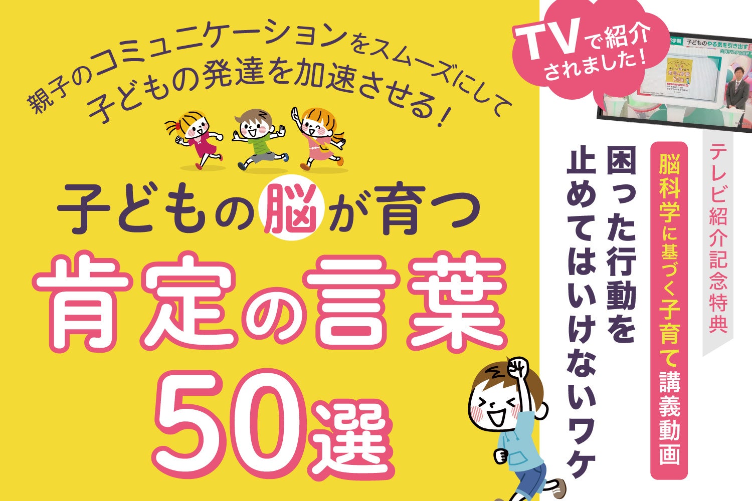 テレビで紹介され話題の小冊子『肯定する言葉50選』好評を受け特典付きで再リリース。「やめなさい」を封印すると子どもの脳が発達する!脳科学・発達科学に基づく解説動画を期間限定でプレゼント
